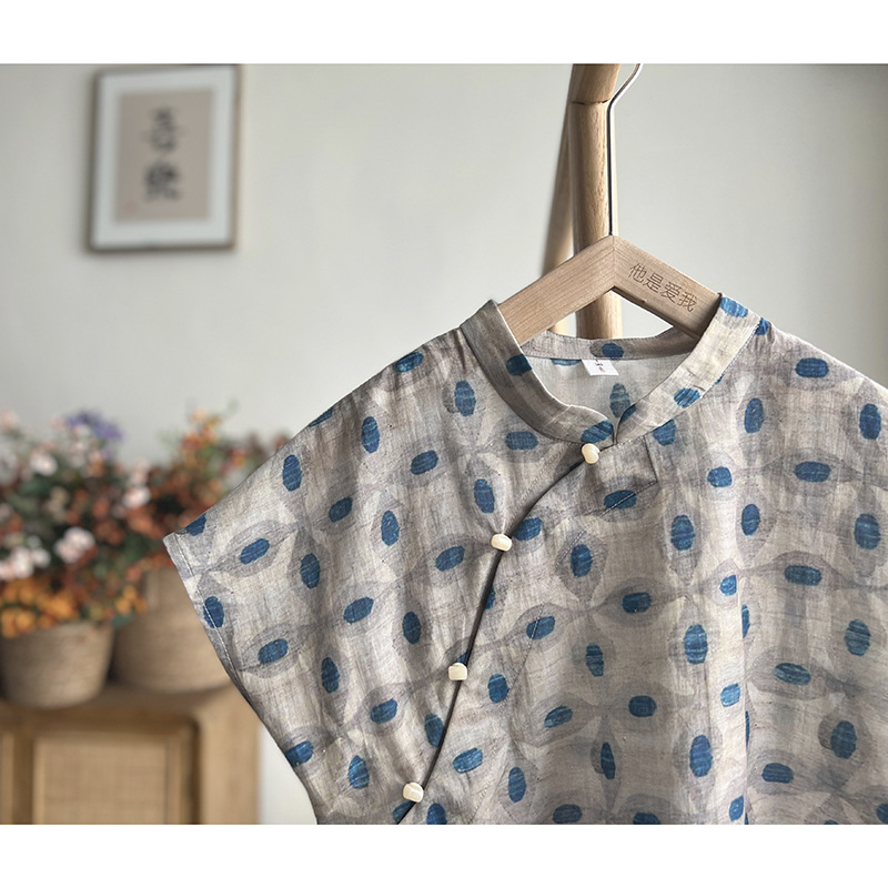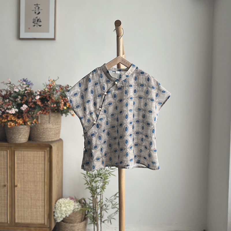 | nameOriginal | 3519 "Cang Lan" Original Summer New Chinese Style Retro Shirt Temperament Oblique National Style Top |