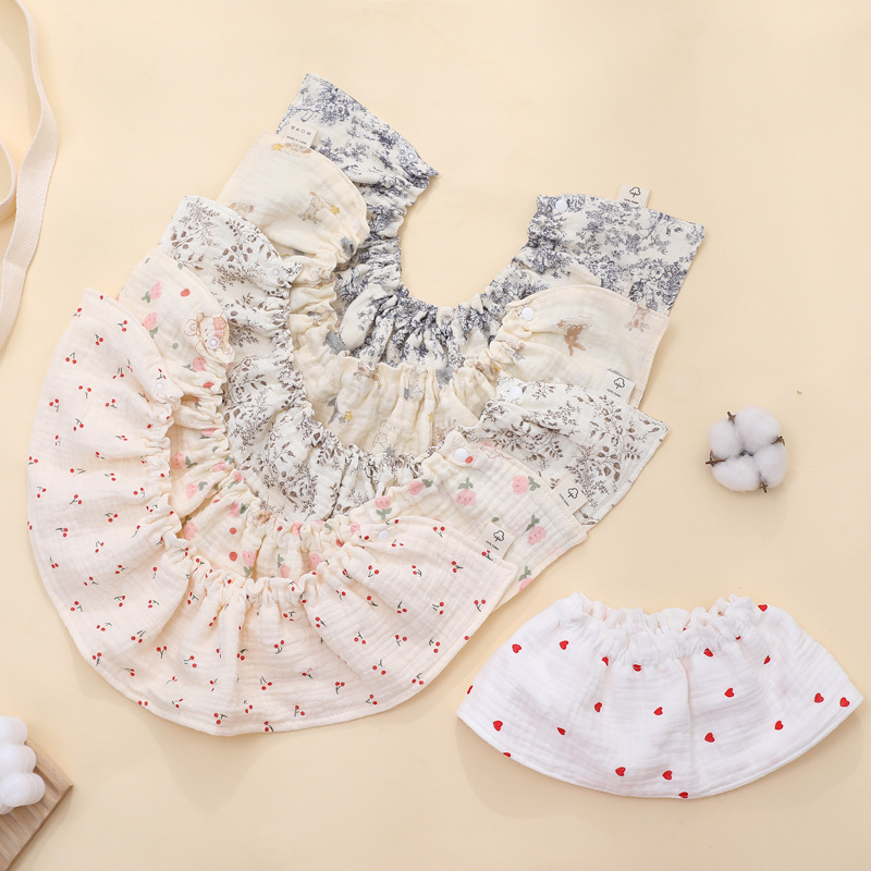 | nameOriginal | 360-degree four-layer gauze bib new cotton gauze pleated baby bib baby saliva towel elastic snap button |