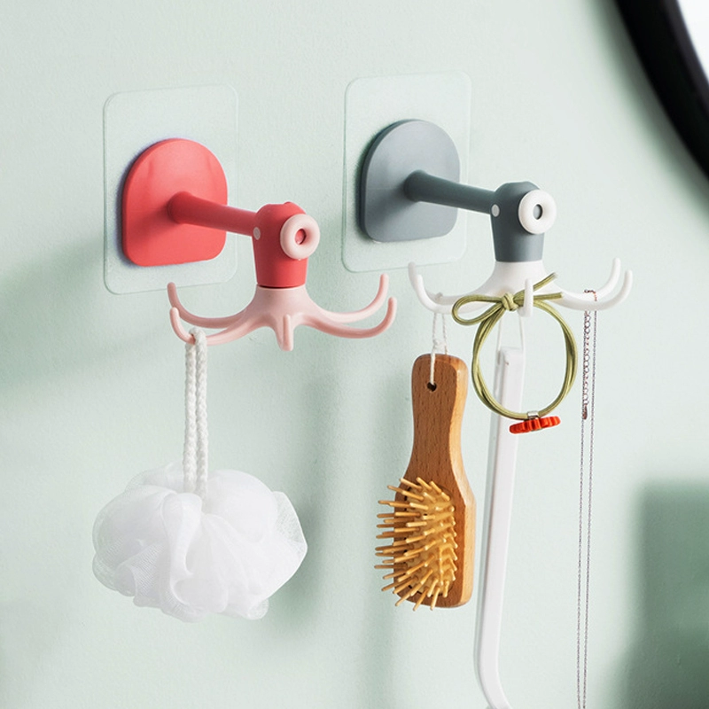 360-degree rotatable hook without punching kitchen spatula storage rack bathroom wall-mounted sticky hook strong adhesive