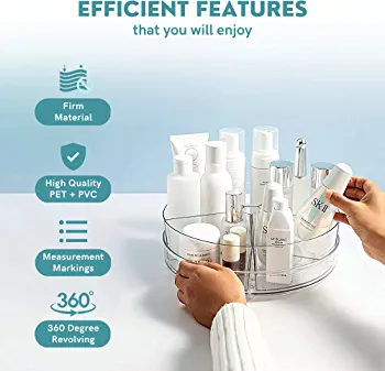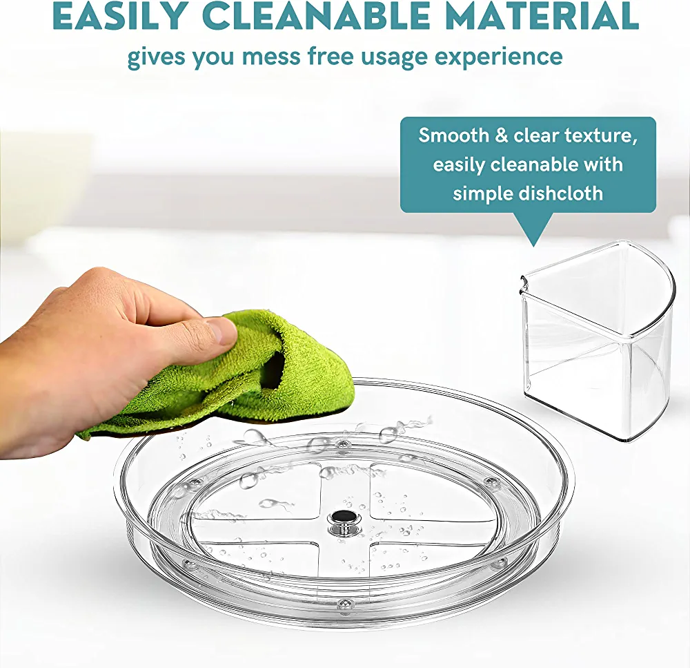 Introducing the DECADEE Lazy Susan 360-Degree Rotating Storage Organizer – the perfect solution for keeping your kitchen, pantry, bathroom, office, or bedroom organized and clutter-free. This smooth cabinet turntable is made of high-quality, clear plastic that is both durable and easy to clean. With a 360-degree rotating design, you can easily access all of your items without having to dig through cluttered cabinets or drawers.