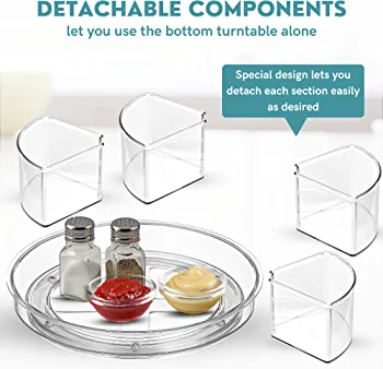 The DECADEE Lazy Susan comes with a spoon set and a BPA-free plastic storage divider, making it the perfect addition to any home. The spoon set allows you to easily scoop out your favorite ingredients, while the storage divider keeps everything in its place. Measuring 5.92X23.5cm, this Lazy Susan is the perfect size for any space.