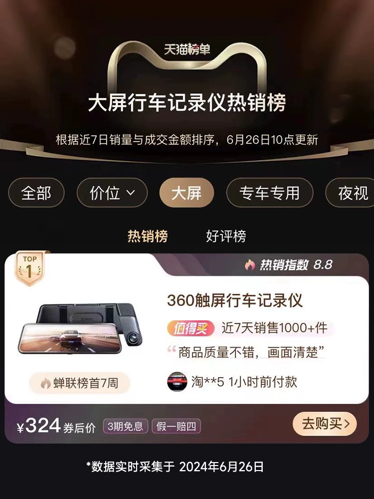 360 driving recorder M320 touch screen reversing image front and rear installation-free wiring panoramic parking monitoring new model
