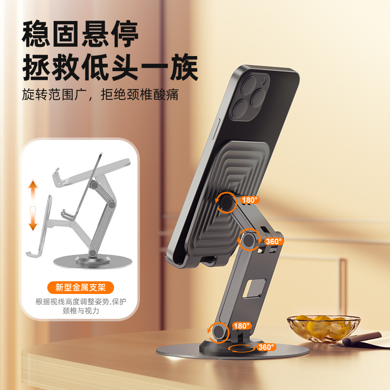 360 Metal Desktop Folding Mobile Phone Bracket Biaxial Rotating Mechanical Sound Lifting Lazy Live Tablet Support Frame