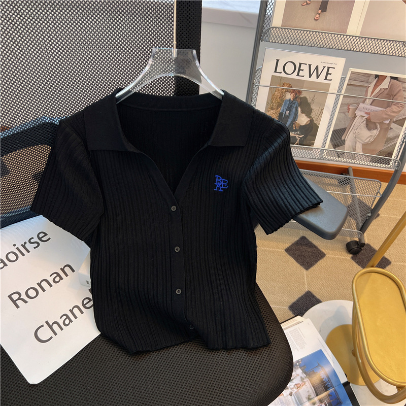 | nameOriginal | 3635# Summer New Foreign-style Letter Lapel Knitted Shirt Women's Slim-fit Short Shirt Pure Desire Slim Top |