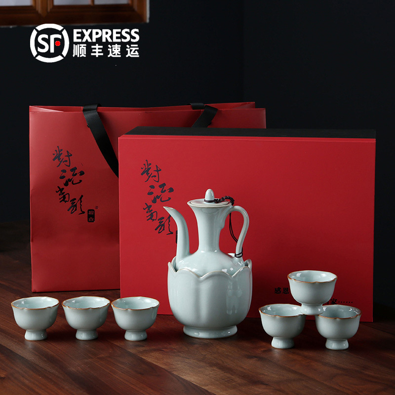 | nameOriginal | 36Y7 white wine glass suit ceramic wine set Ru kiln wine cup separator household pouring wine pot long mouth ancient style warm |