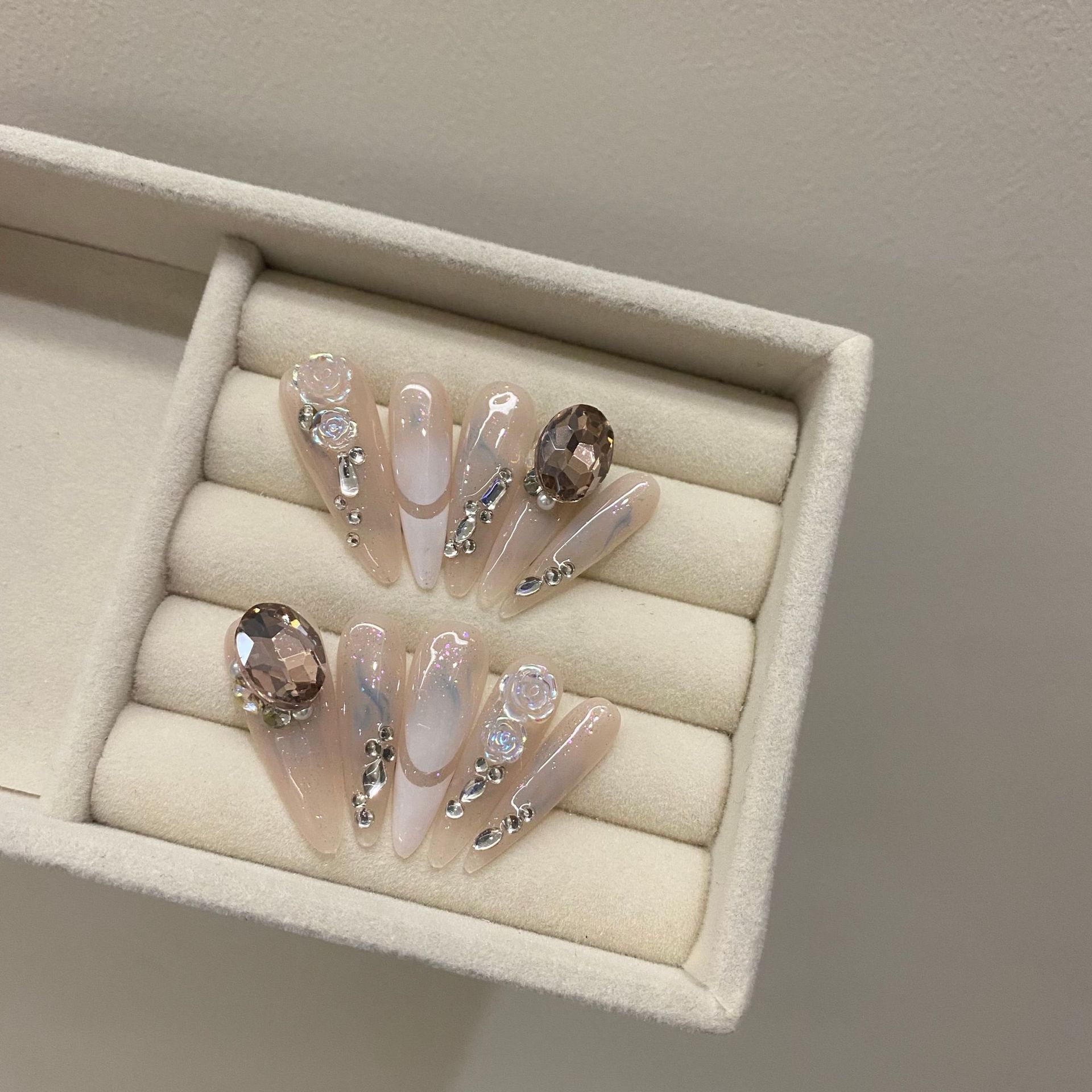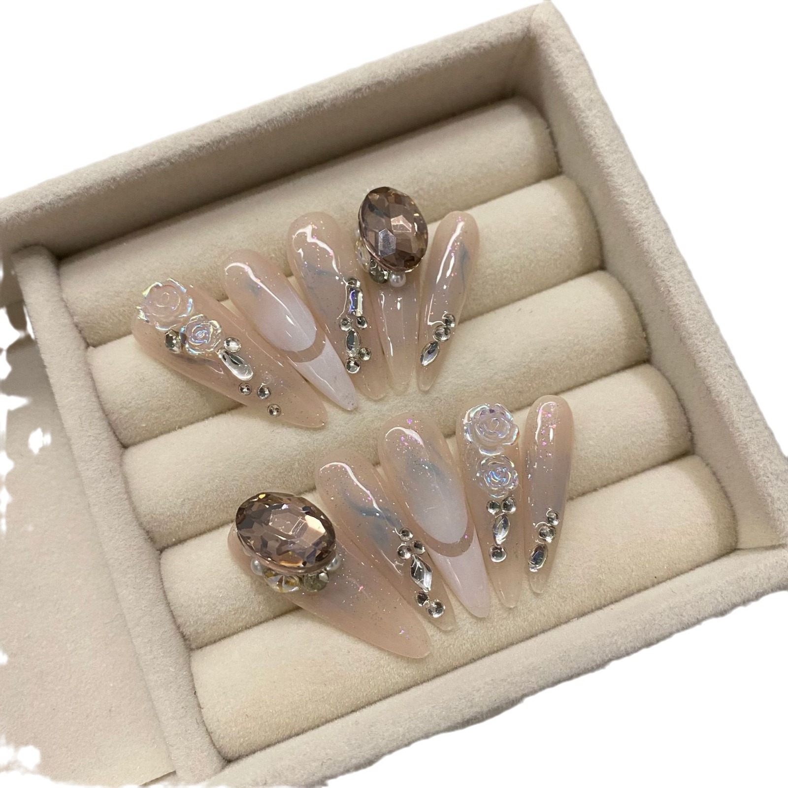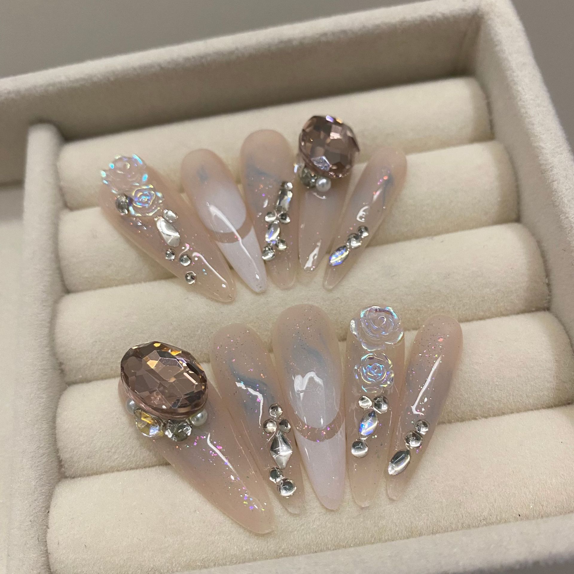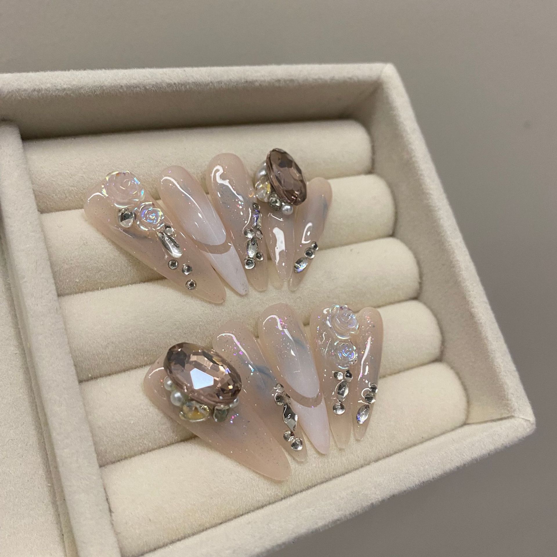 | nameOriginal | 373 long almond [real shot original] new long pointed rose drop diamond pigeon eggs pure hand-worn nail art |