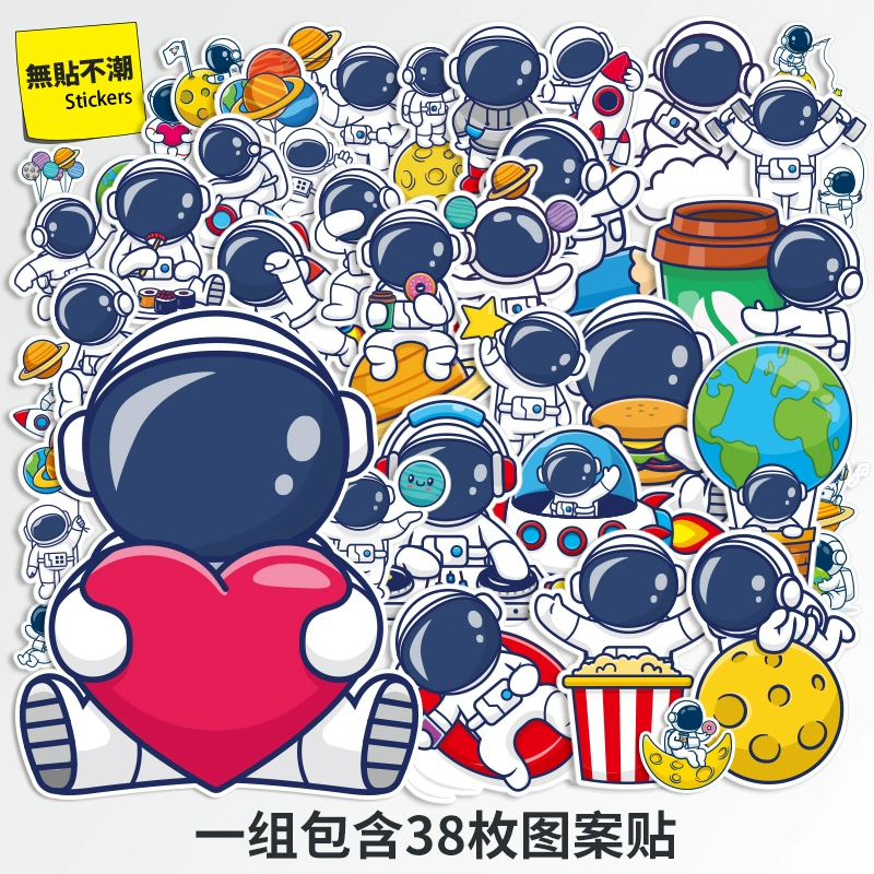 38 astronaut character cartoon personality stickers universe NASA space suitcase suitcase notebook waterproof