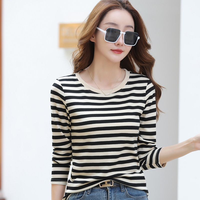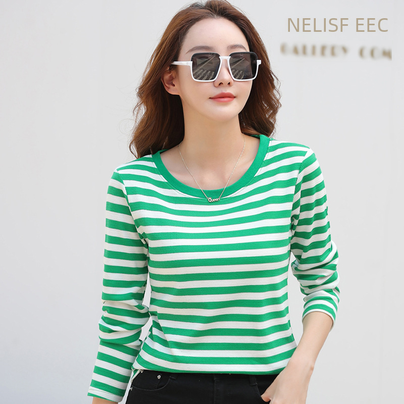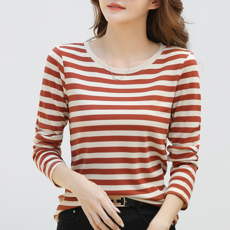| nameOriginal | 380 Striped Cotton Long-sleeved T-shirt Women's Autumn New Middle-aged Mother Large Size Loose Slimming Belly Covering Base Shirt |