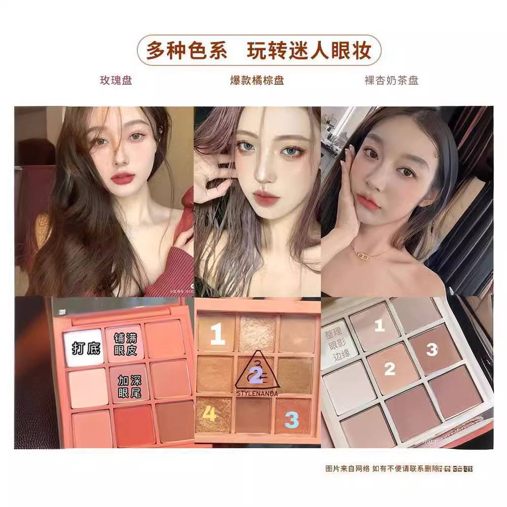 3CE Eyeshade Plate ins Super Fire Jiugongge 9 Color overtake Pearlescent Earth Color Pumpkin Plate Four Color Glitter