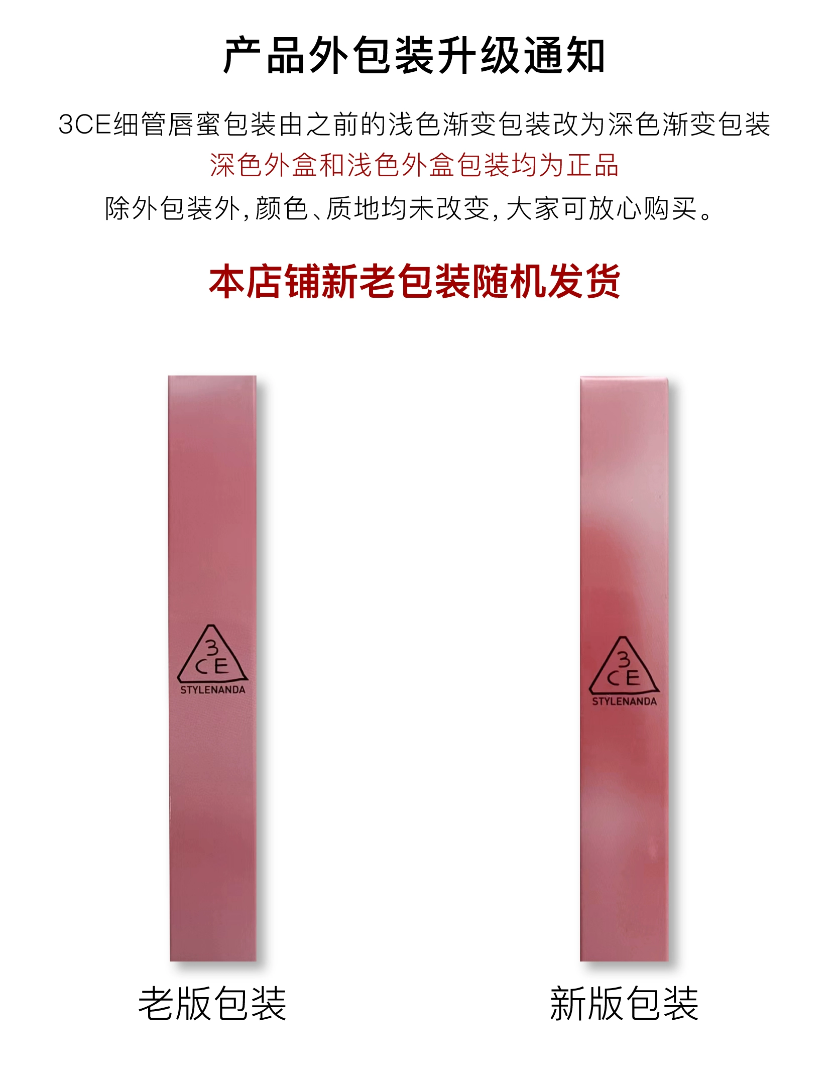 3ce Korean thin tube moisturizing solid long-lasting lipstick