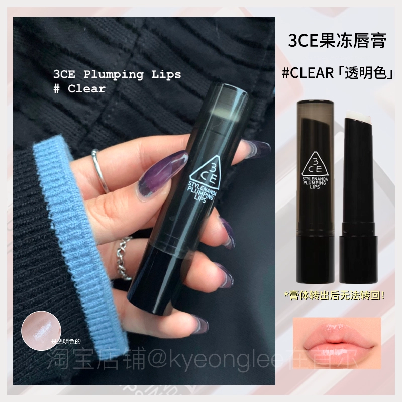 3CE Korean thin tube water gloss mirror moisturizing lip jelly