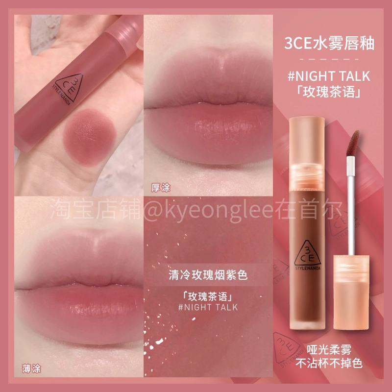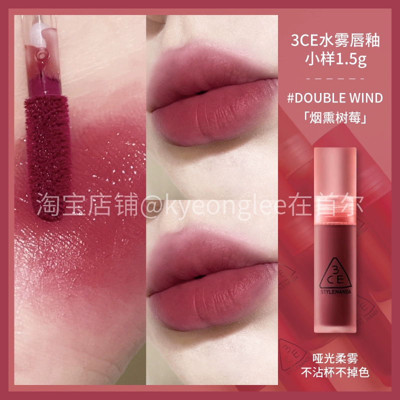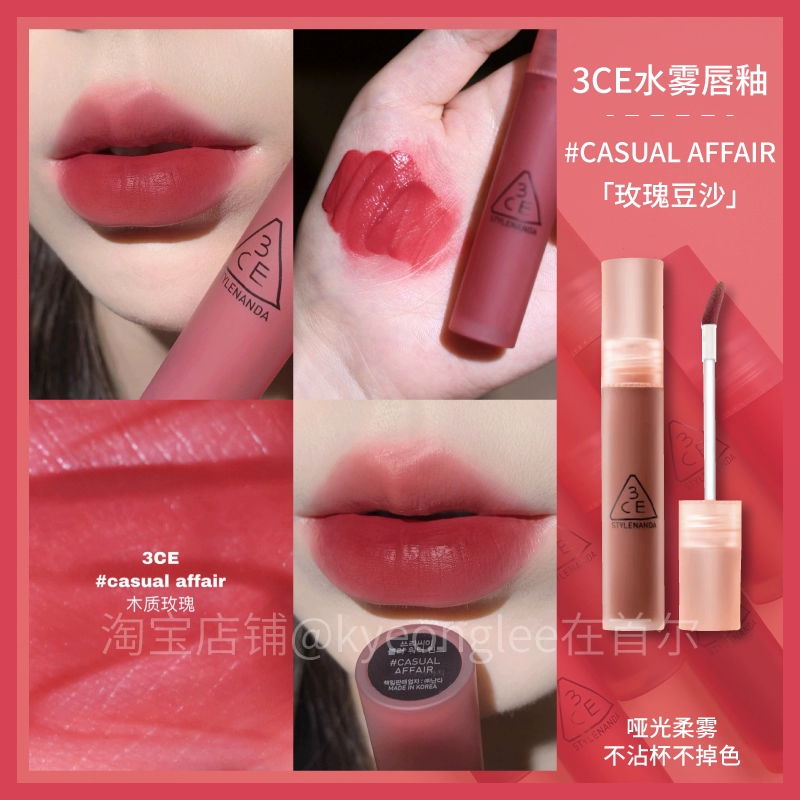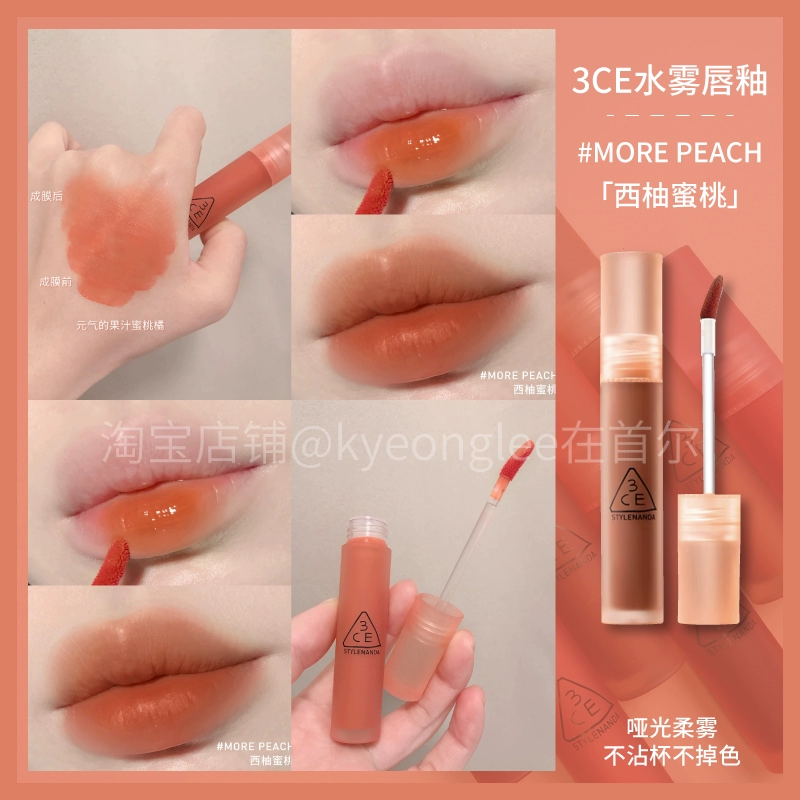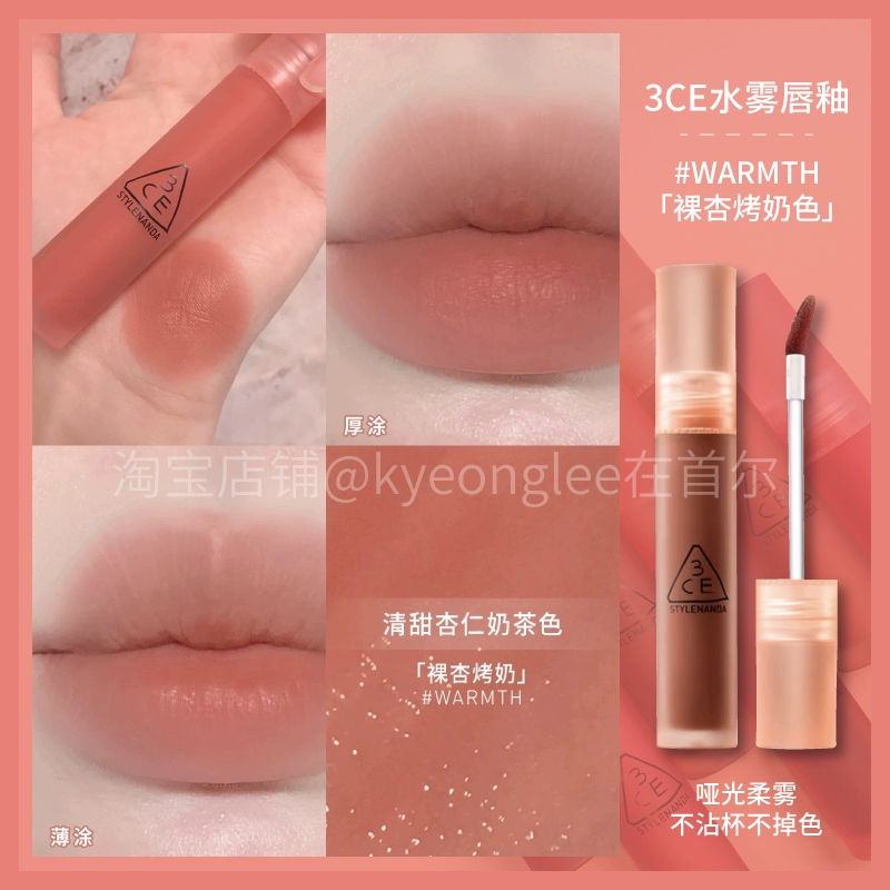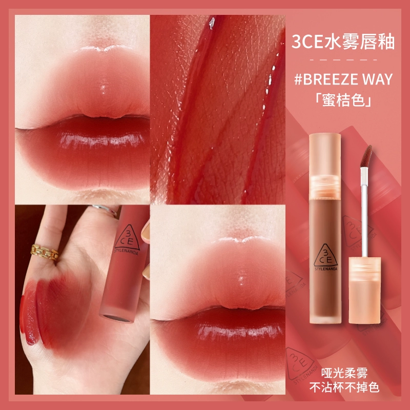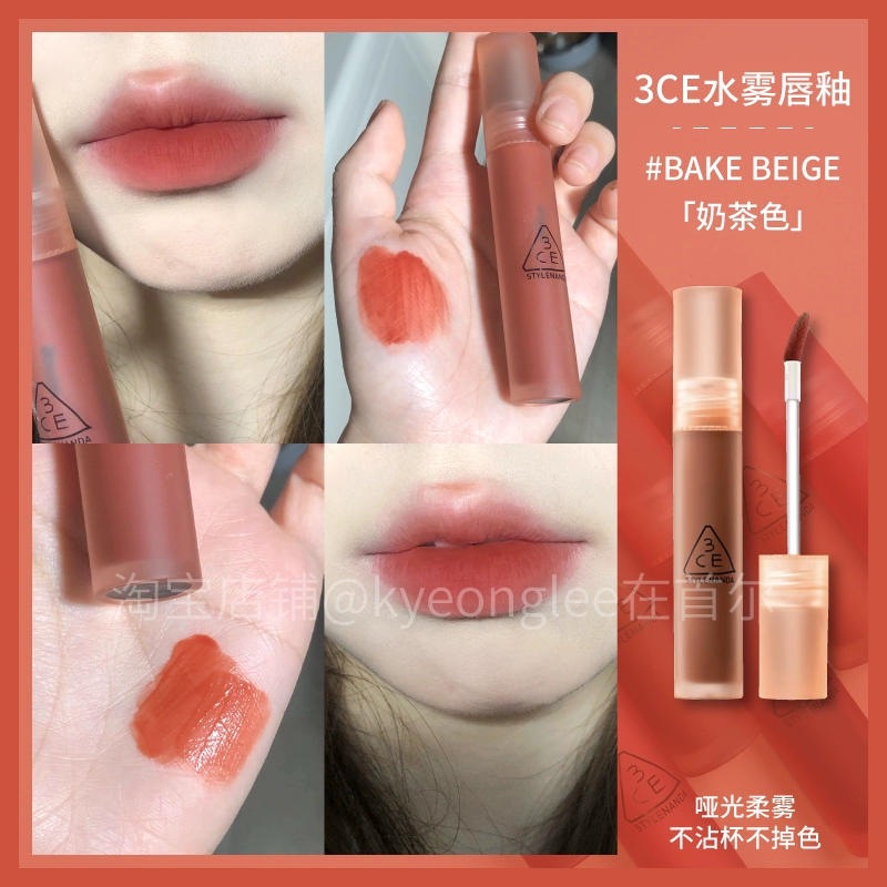 3CE Lip Glaze Water Mist Laydown velvet taupe brick red bitter house bitter lip mud mousse girl
