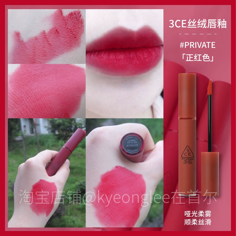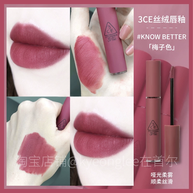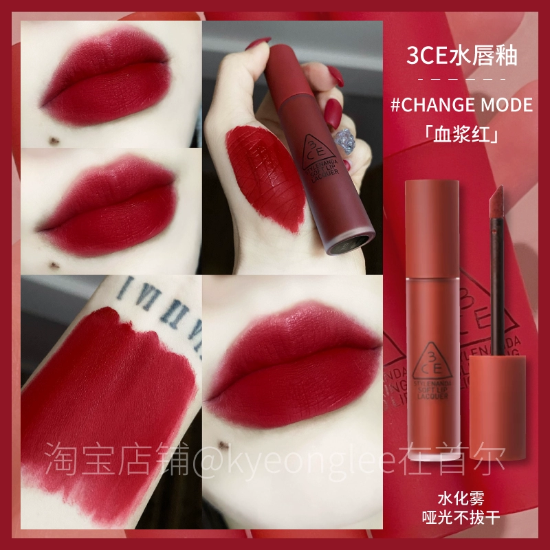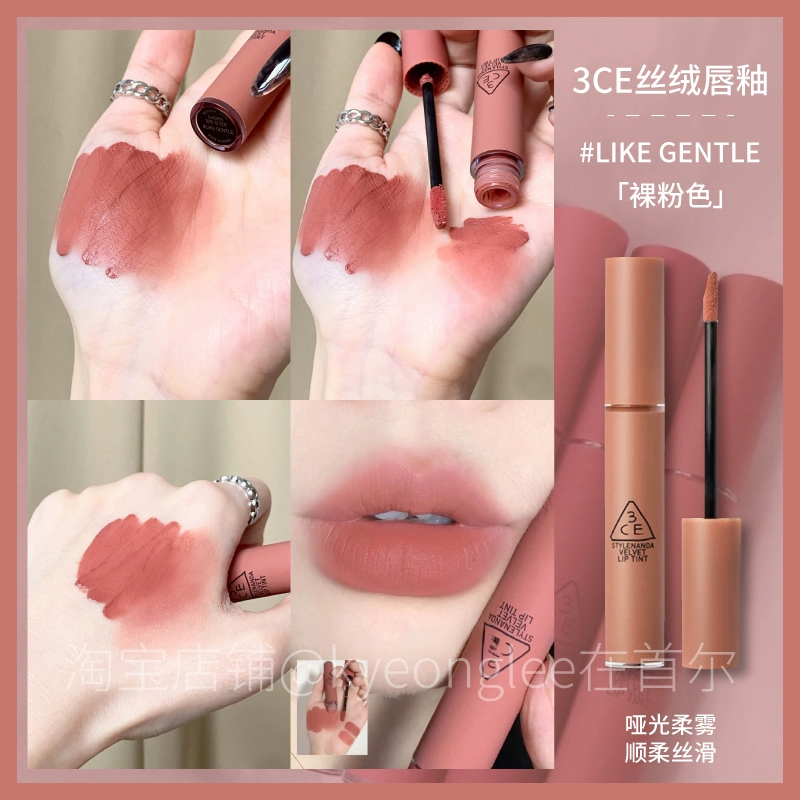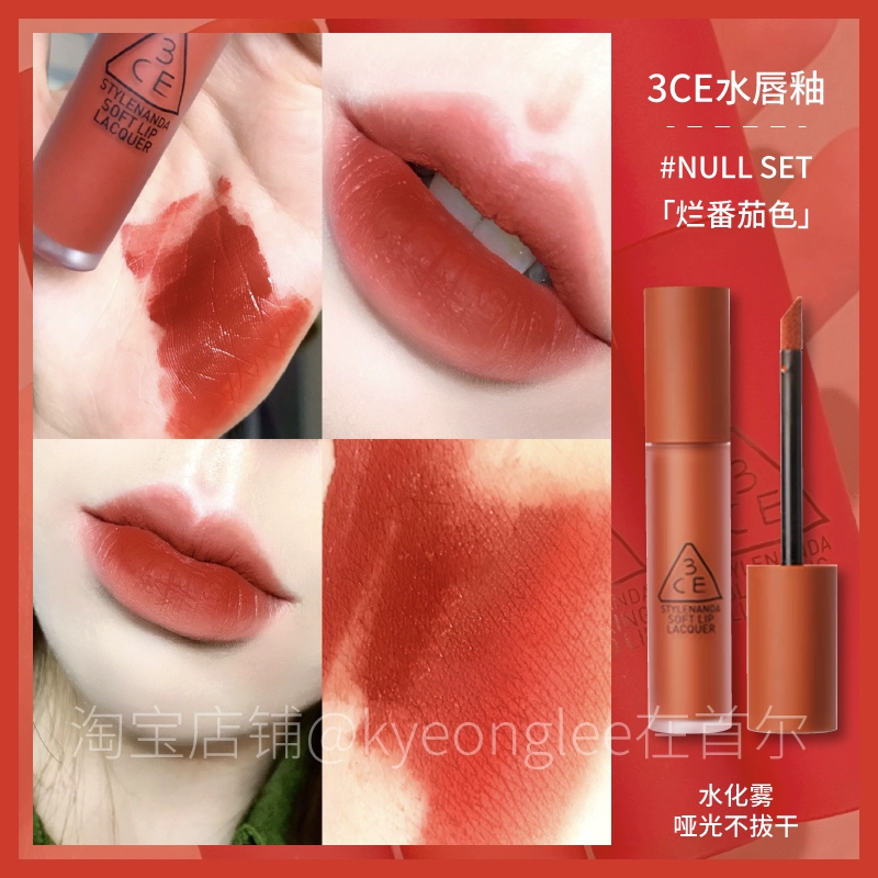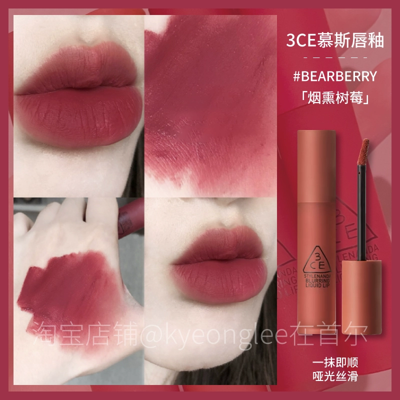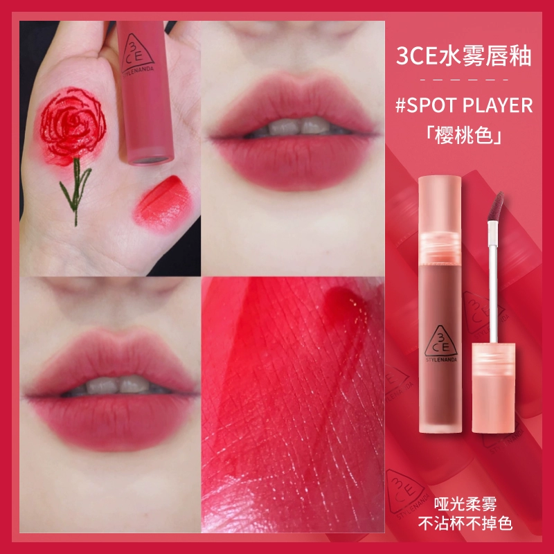 3CE Lip Glaze Water Mist Laydown velvet taupe brick red bitter house bitter lip mud mousse girl