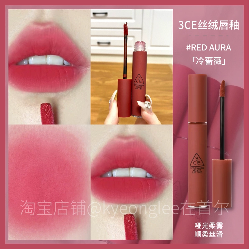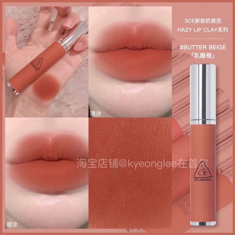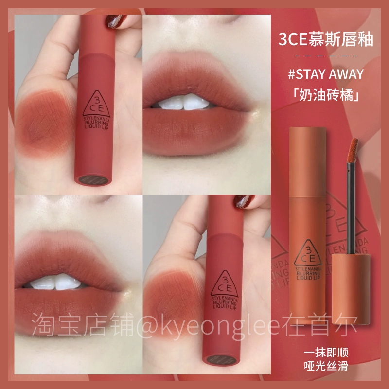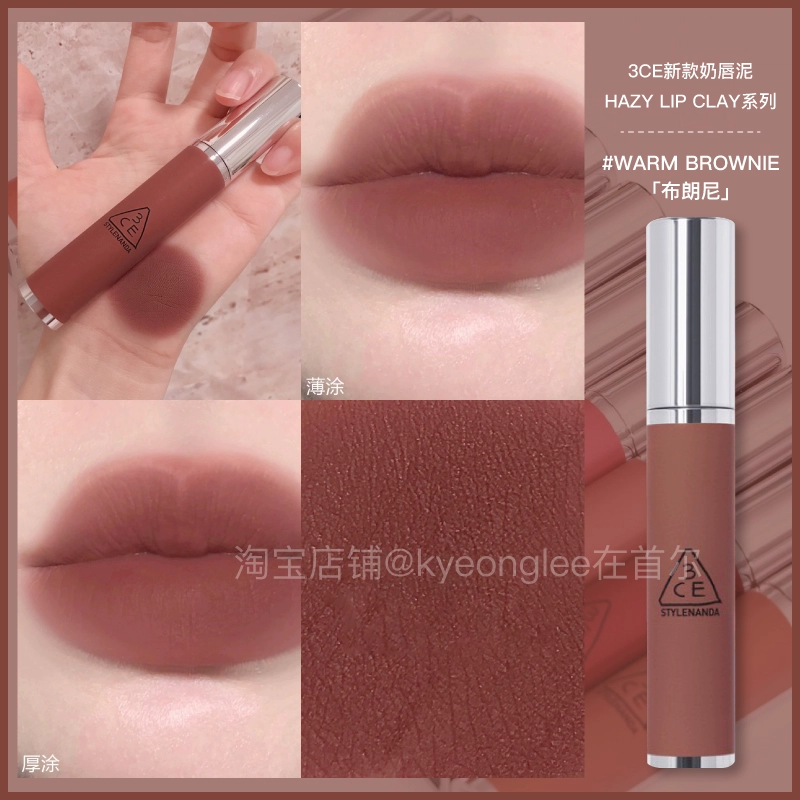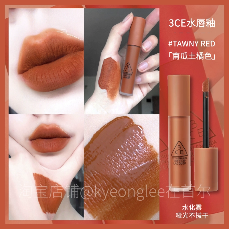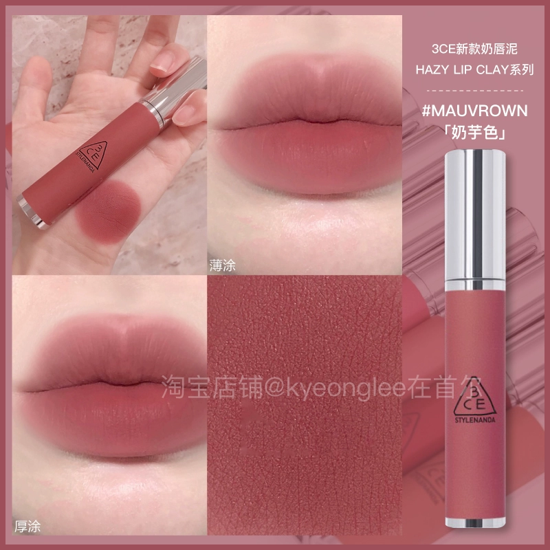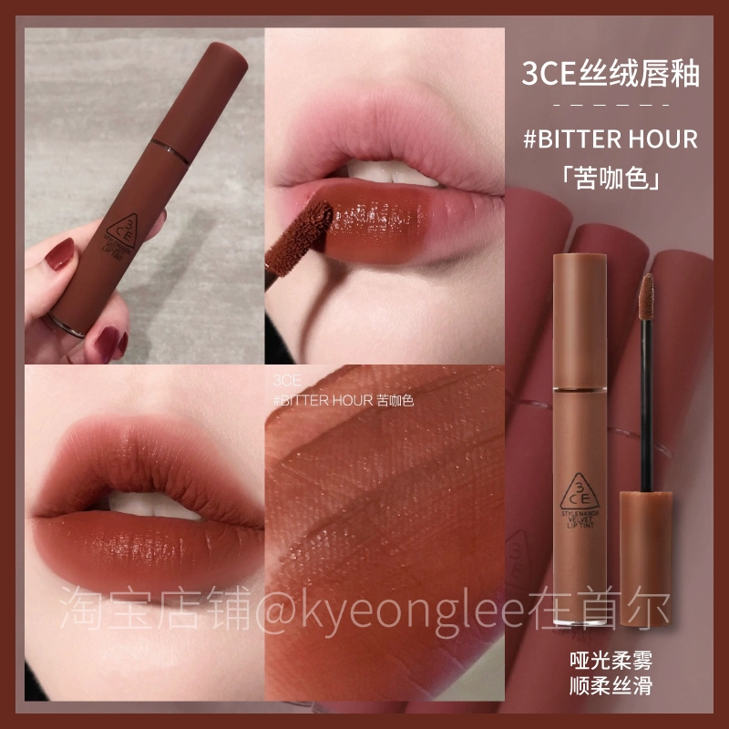 3CE lip glaze water mist laydown velvet taupe brick red bitter hour bitter coffee color lip mud mousse for women