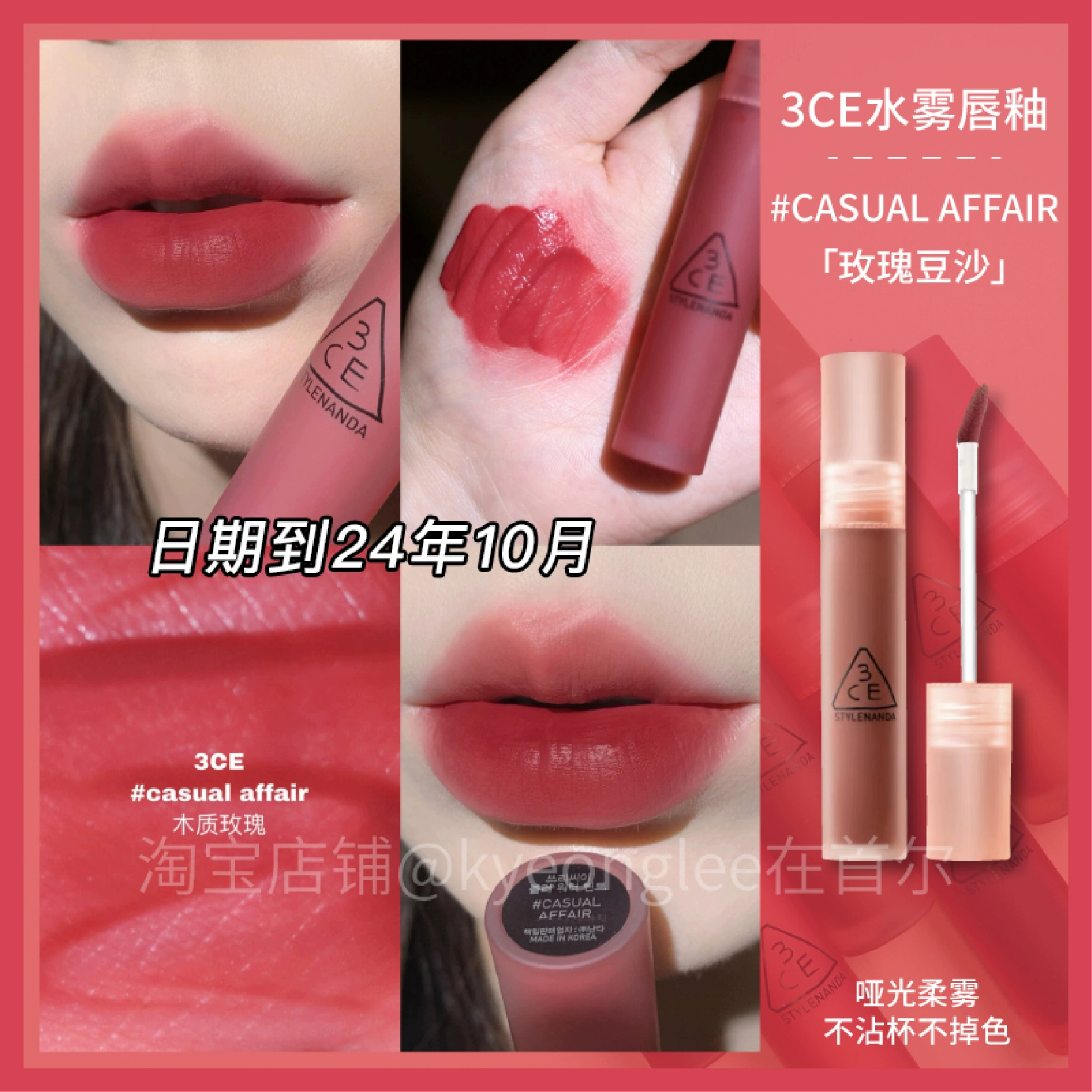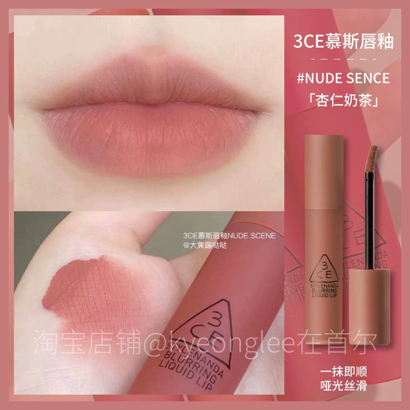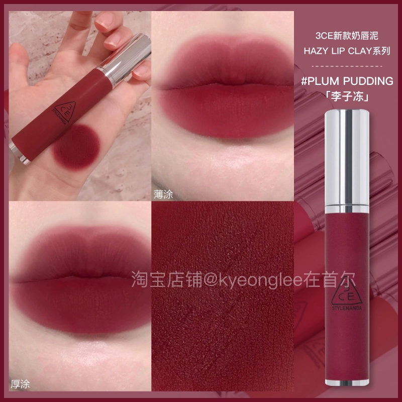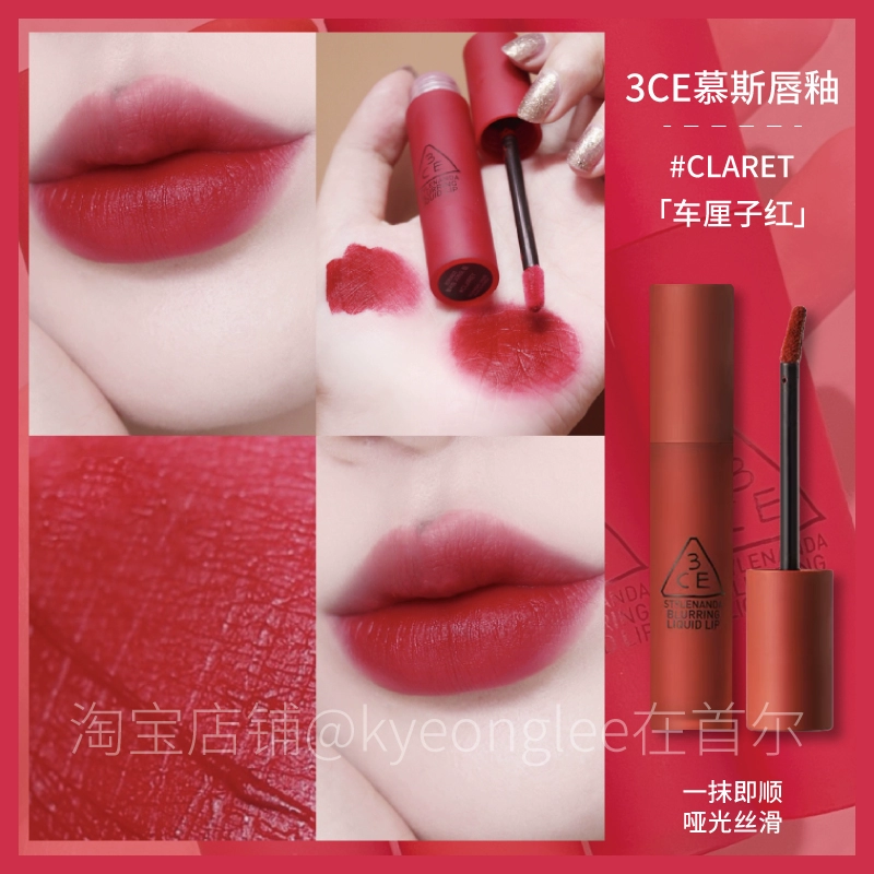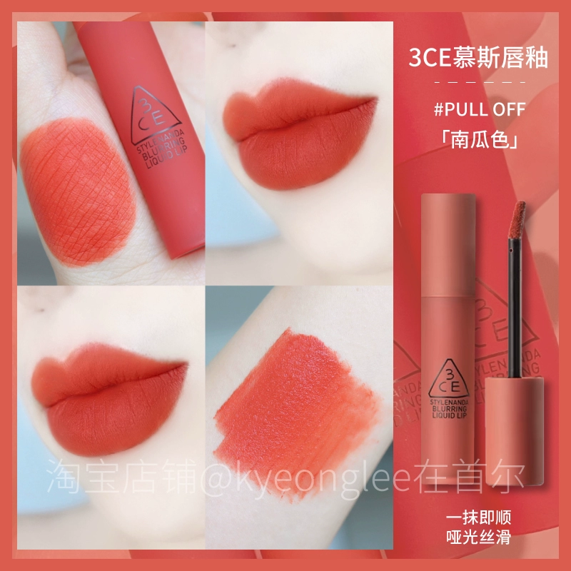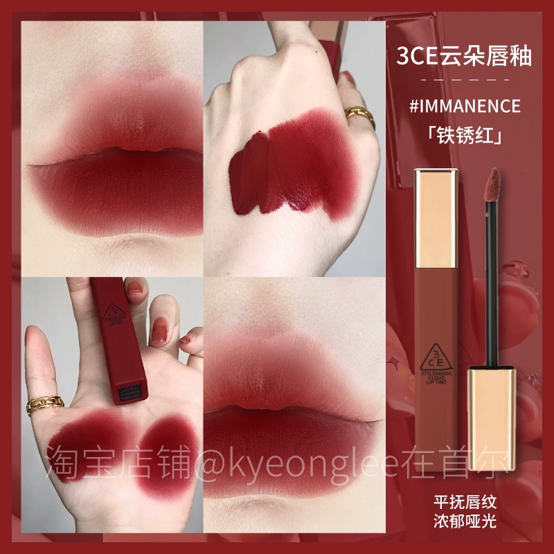3CE lip glaze water mist laydown velvet taupe brick red bitter hour bitter coffee color lip mud mousse for women