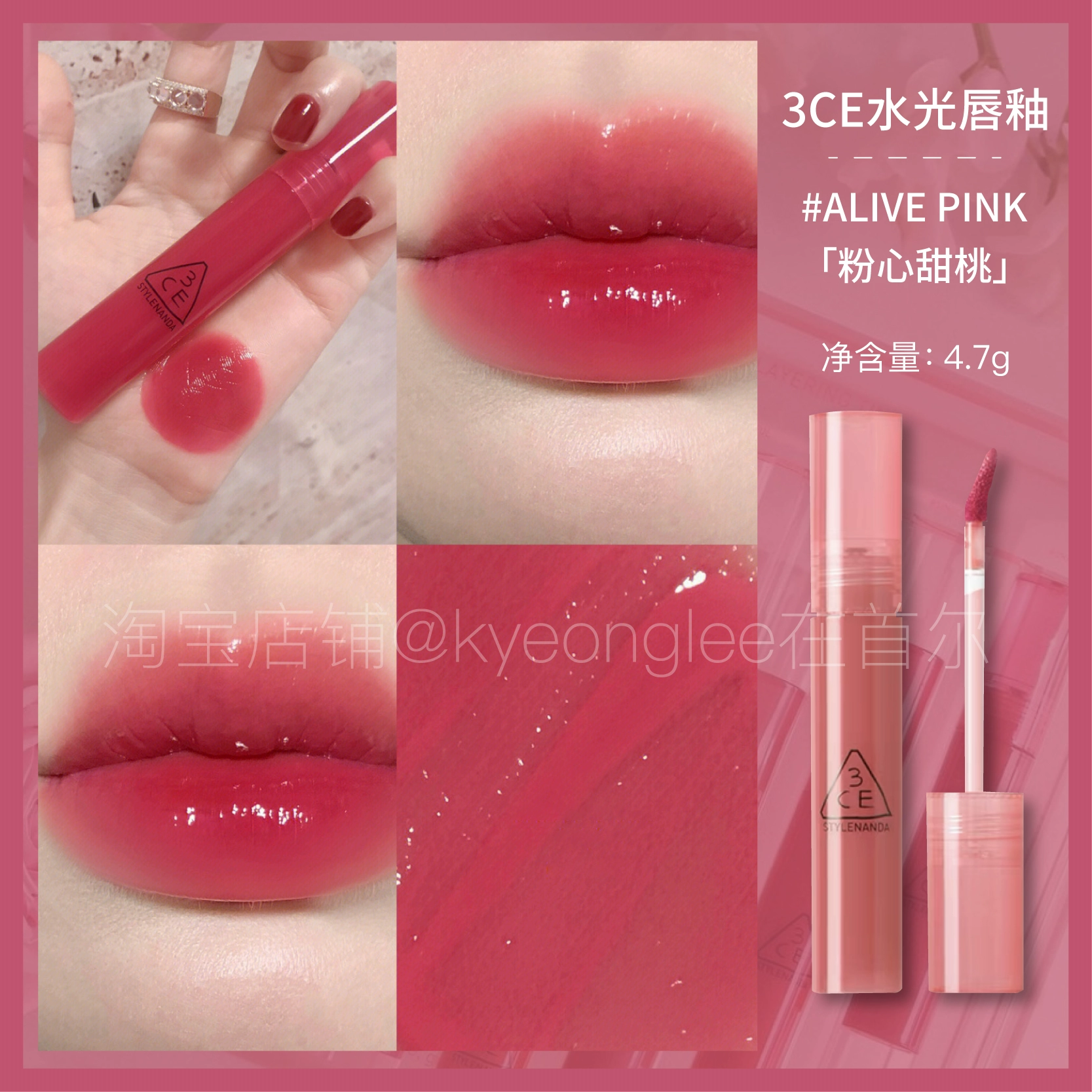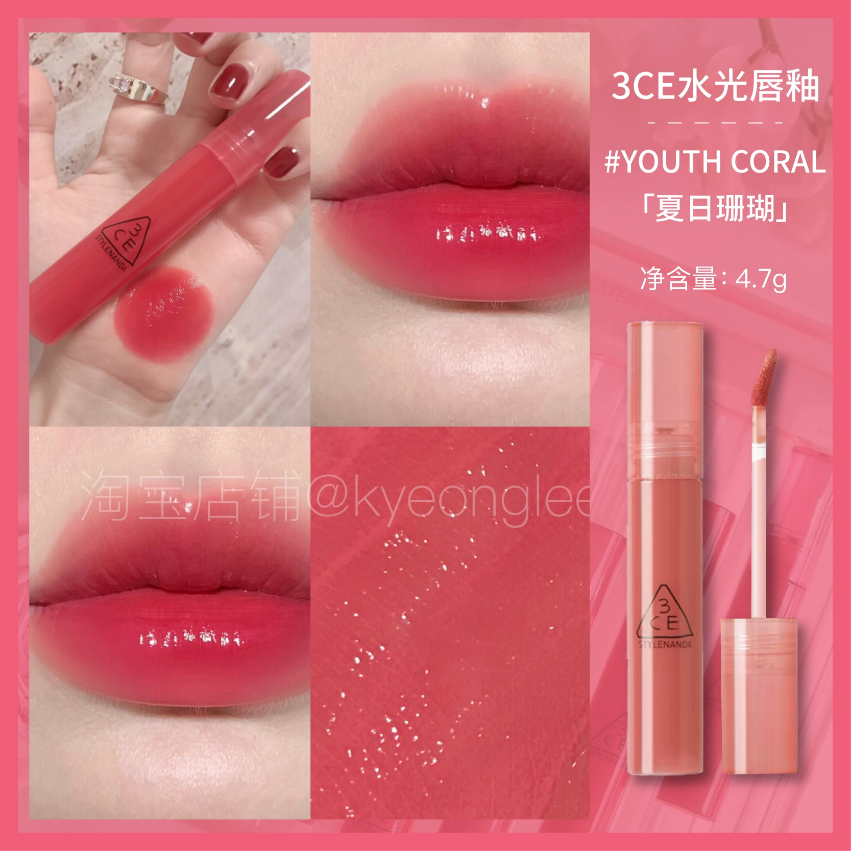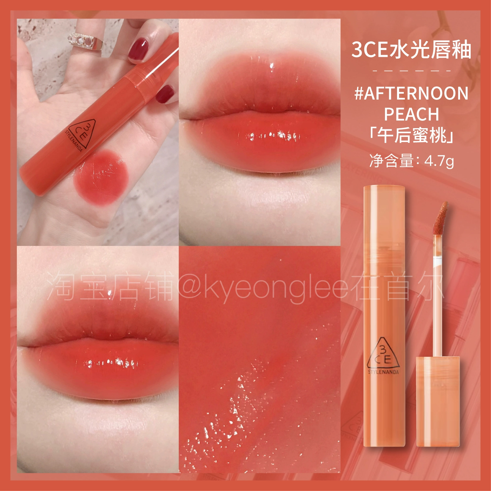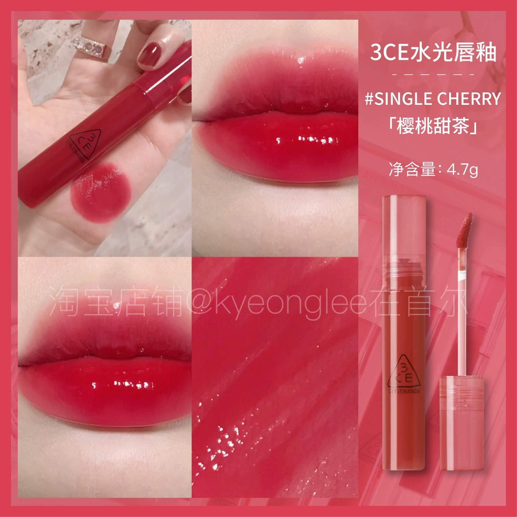 3CE water drop gel lasts long and not easy to dip the cup lip glaze