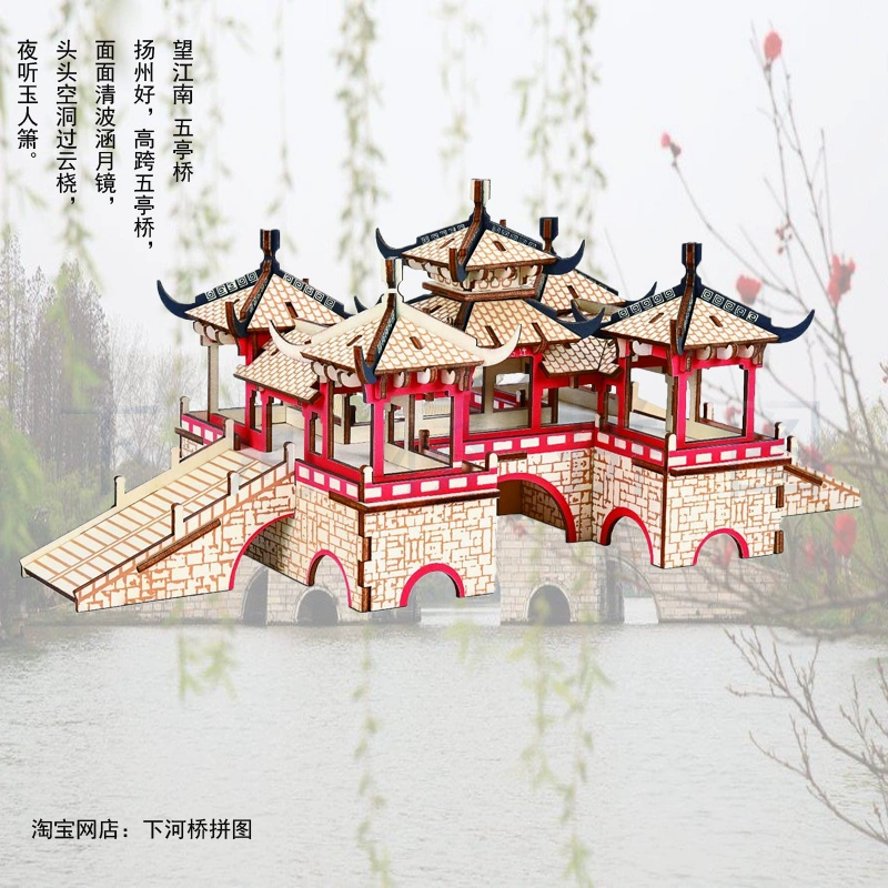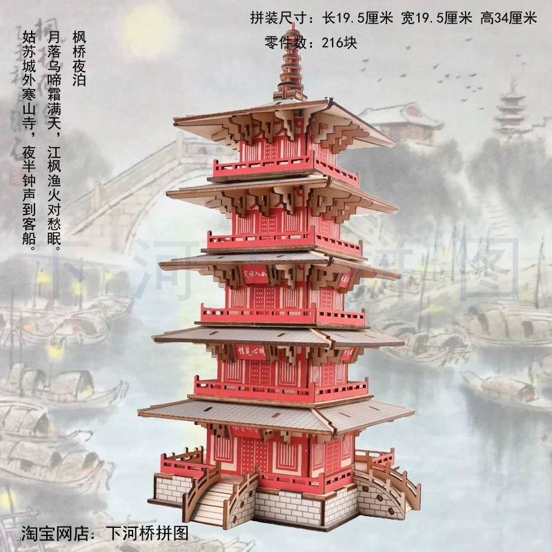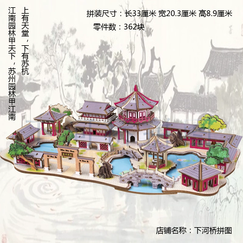 3D laser three-dimensional puzzle diy wooden simulation model children's hand-assembled educational toys suzhou garden