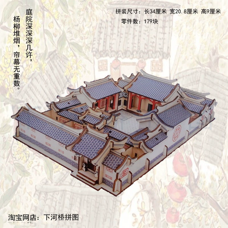 3D laser three -dimensional puzzle DIY wooden simulation model Children handmade assembly puzzle toys Suzhou garden
