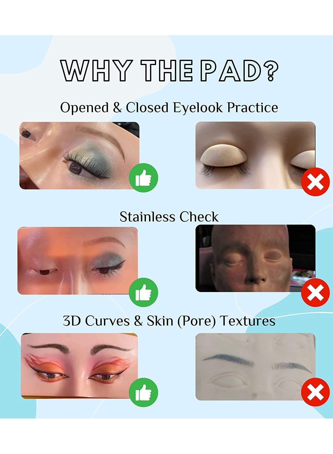 | nameOriginal | Makeup Practice Face Board 3D Realistic Pad for Makeup Artist Board Makeup Practice, Eyeshadow Eyeliner Eyebrow Lash mapping Realistic Face Skin Eye Make up Practice Model for Makeup Starter |