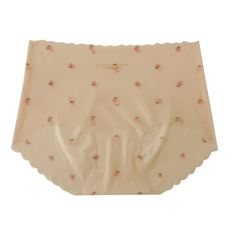 3D Mask Pants Ice Silk Traceless Panties Women's Strawberry Girls Sexy Peach Hip Quick-drying Naked Hip Briefs for Women