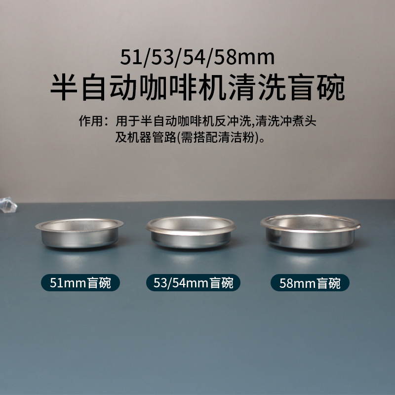 | nameOriginal | 3EW1 coffee machine cleaning blind bowl stuffy brewing head handle stainless steel non-hole 51/54/58mm powder bowl Universal |