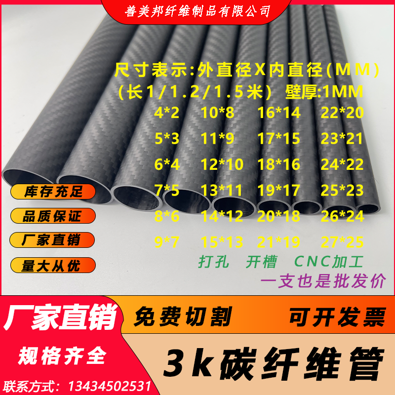 | nameOriginal | 3K high-strength carbon fiber tube wall thickness 1MM length 1 meter 1.2 meters 1.5 meters outer diameter 4MM-27MM carbon tube |