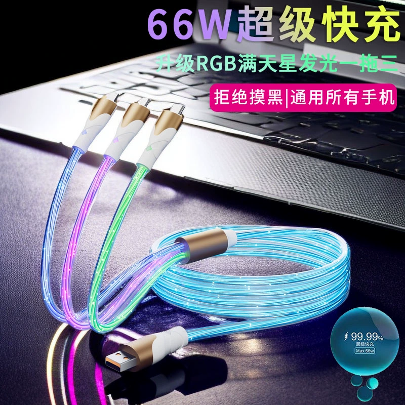 | nameOriginal | 3m Type-C luminous data cable 6a super fast charging suitable for Huawei Honor Apple car data RGB ambient light extended Android Xiaomi fast charging cable three-in-one multi-function multi-head |