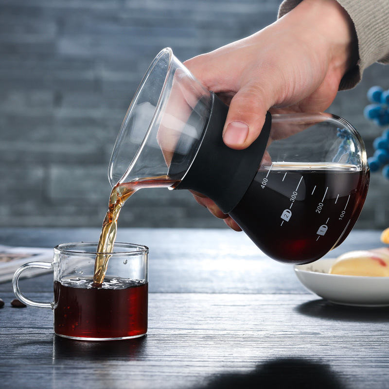 3OBR transparent glass coffee pot household scale hand punch sharing cup drip 304 stainless steel double-layer strainer