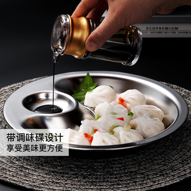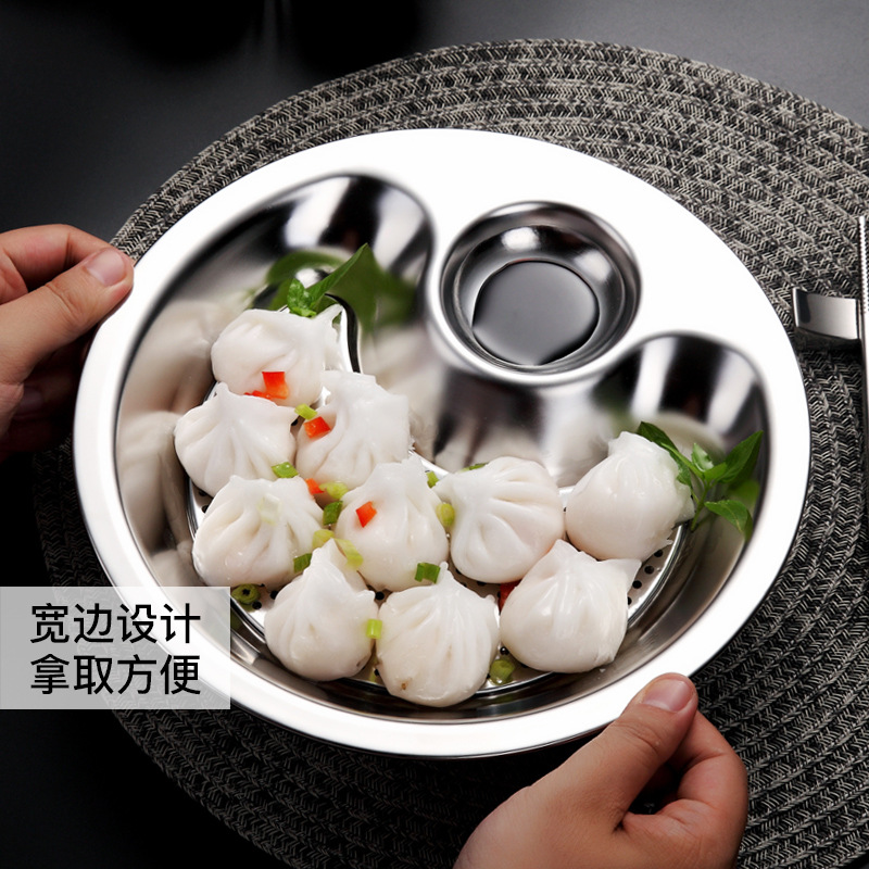 | nameOriginal | 3OBR wholesale stainless steel dumpling plate with vinegar dish household thickened double-layer draining steamed dish tray disc fish plate  |