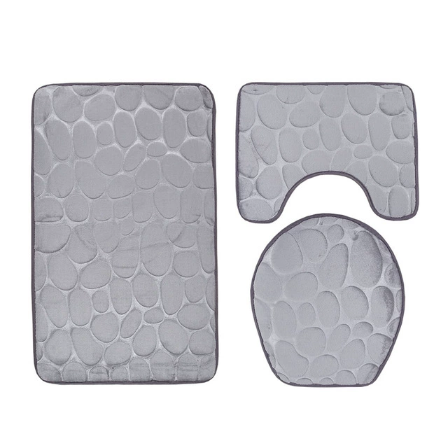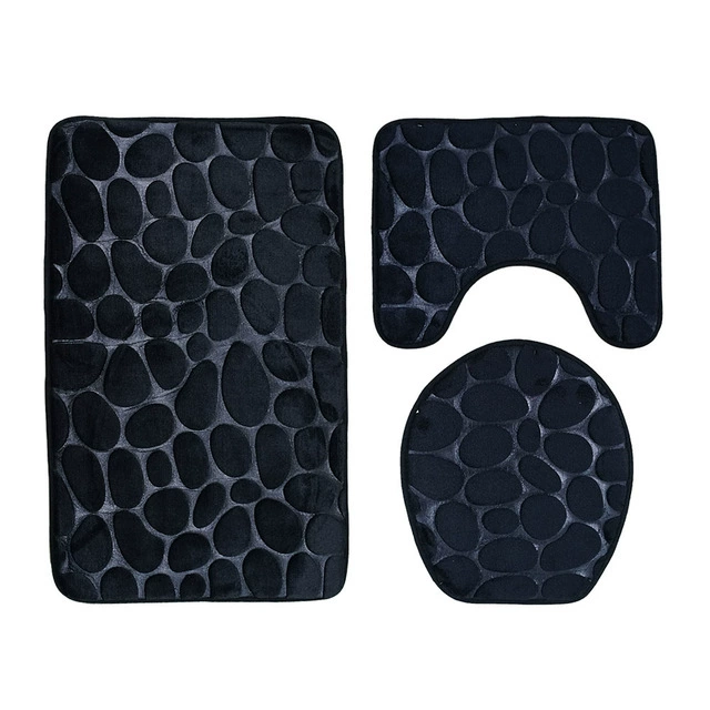 3PCS Set Bath Mat Rug Non Slip Push Bathroom Toilet Seat Li