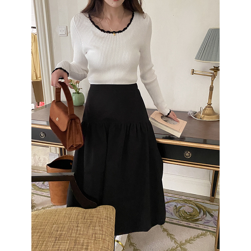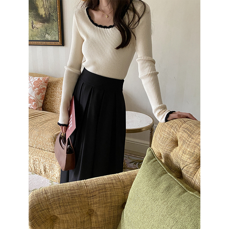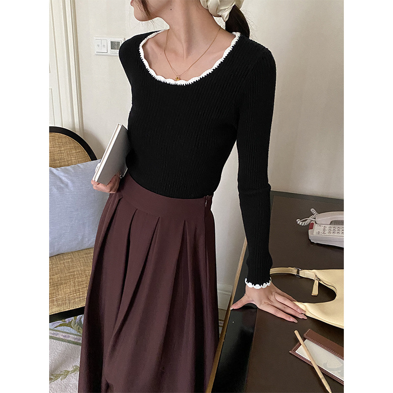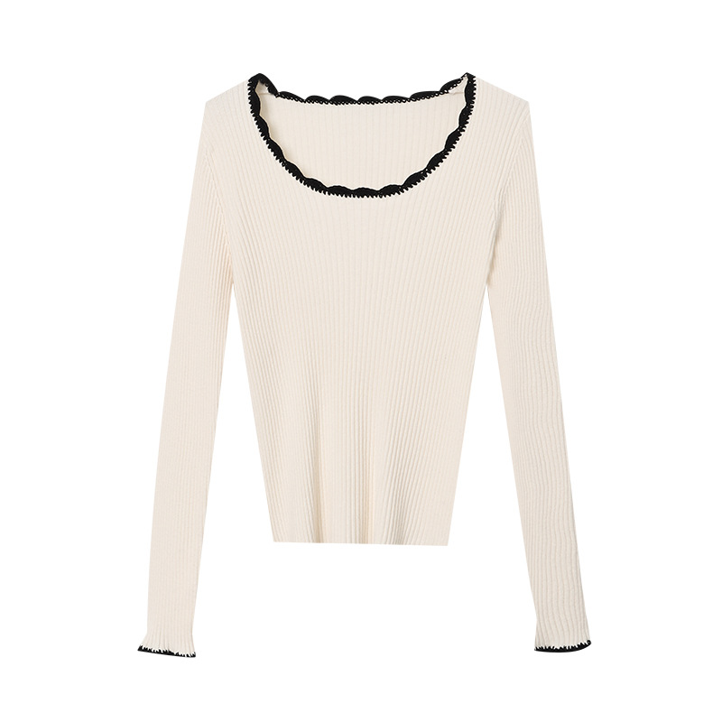 | nameOriginal | 3th Morning French style large round neck chic contrast color lace slim bottoming sweater ZY1213 |