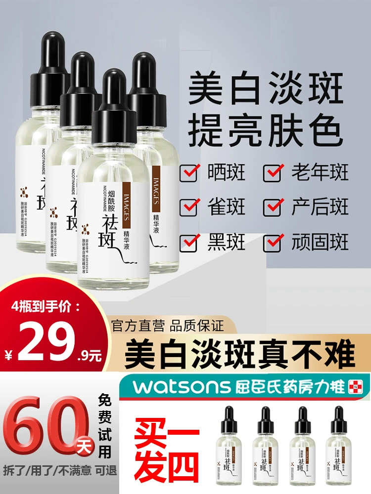 4 bottles of whitening and spot-lightening essence, nicotinamide and arbutin, spot-dissolving oil, spot-removing, vitamin VC, brightening liquid, lightening spots