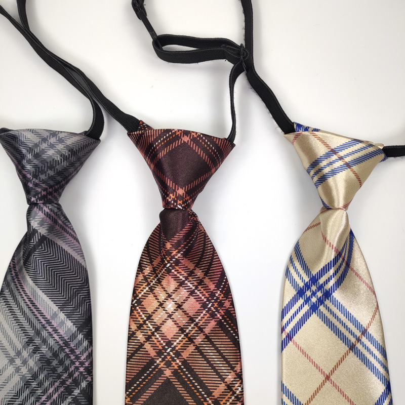 4 Color Student Knot-free Pullover Plaid Printed Small Tie Adjustable Trendy ins Style Men's and Women's Lazy Tie