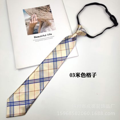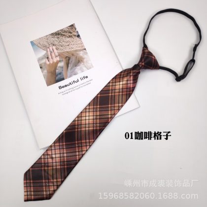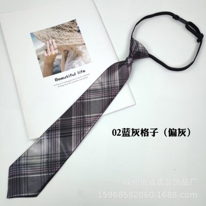 4 Color Student Knot-free Pullover Plaid Printed Small Tie Adjustable Trendy ins Style Men's and Women's Lazy Tie