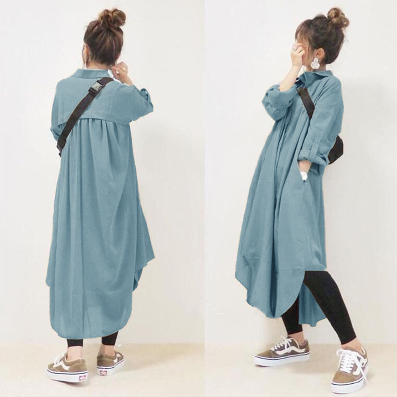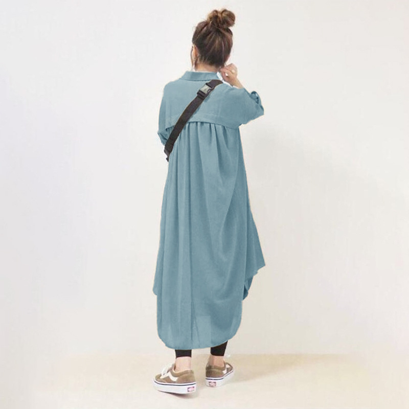 | nameOriginal | 4 colors in stock Japanese 2023 New lapel long sleeve pocket simple loose long cotton and linen shirt dress |