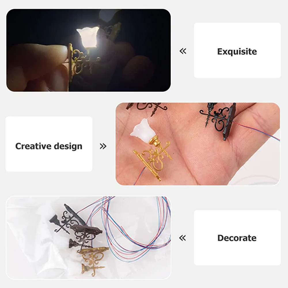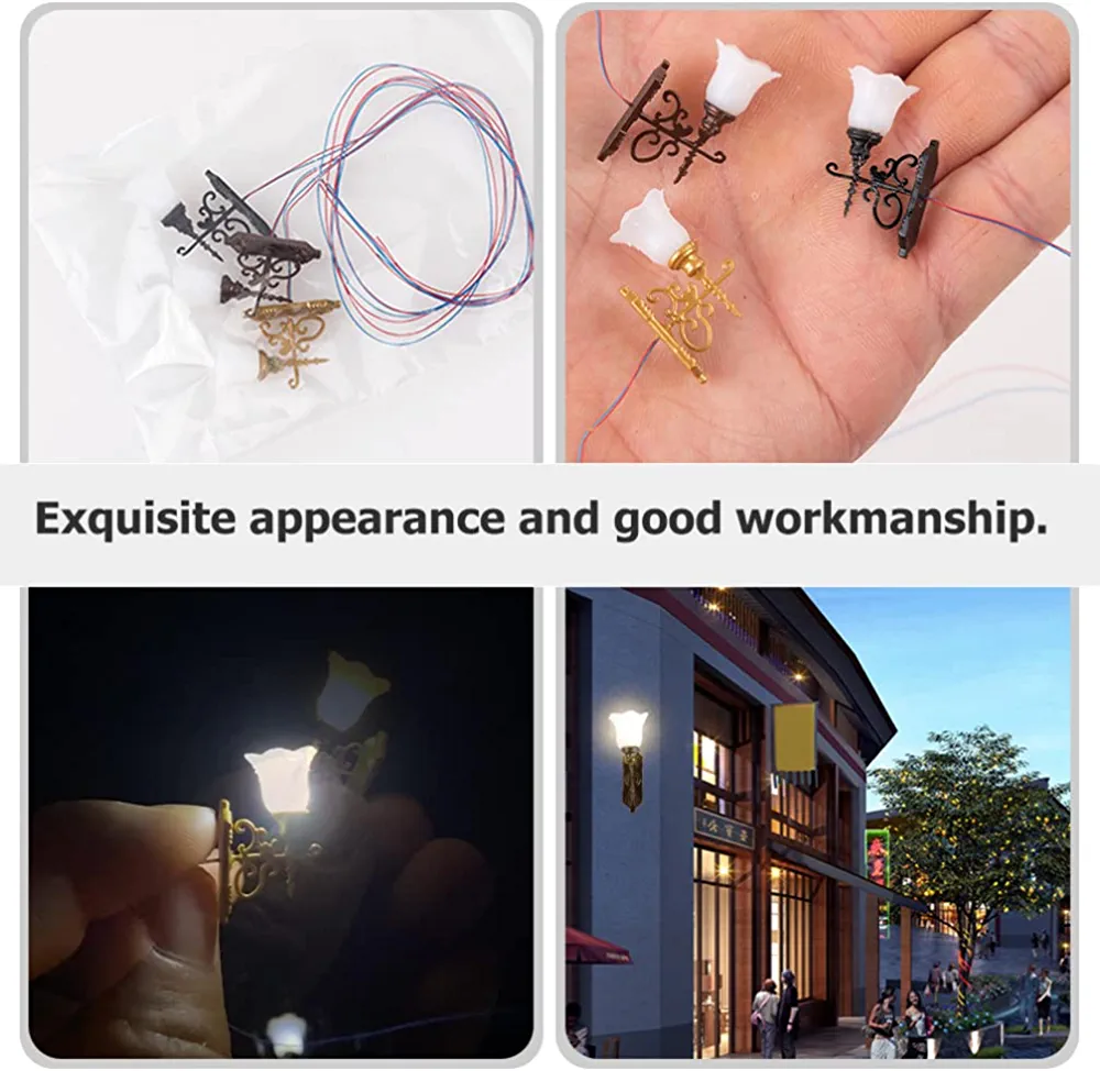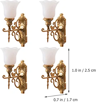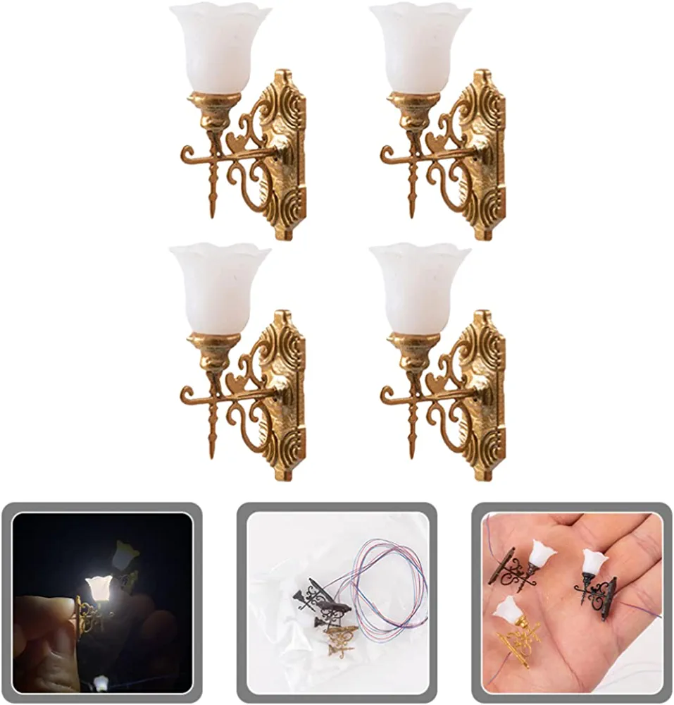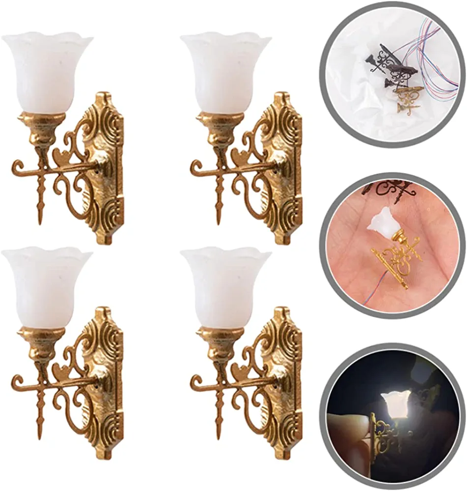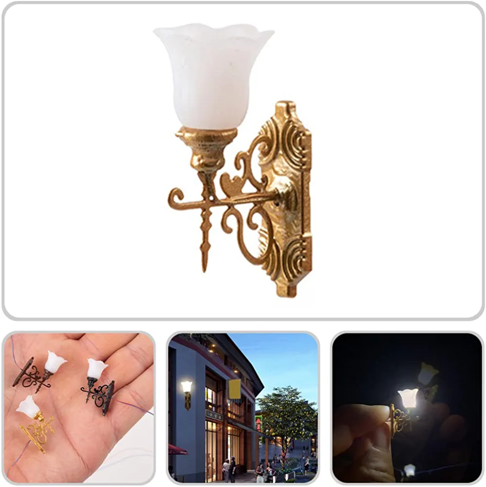 Yardwe 4pcs Dollhouse Wall Lamp Dolls House Miniature Lighting Mini Outdoor Lantern Lamp Model Miniature Wall Sconce for Sand Table Dollhouse Accessories Golden