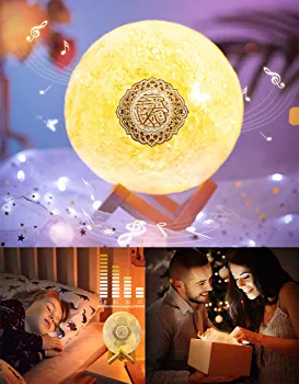 4-in-1 Portable Bluetooth Quran Speaker with Moon Lamp and FM Broadcast.