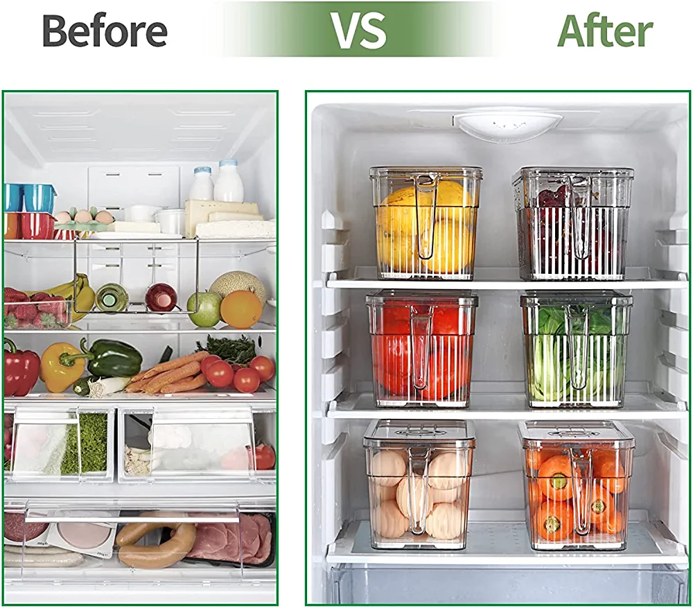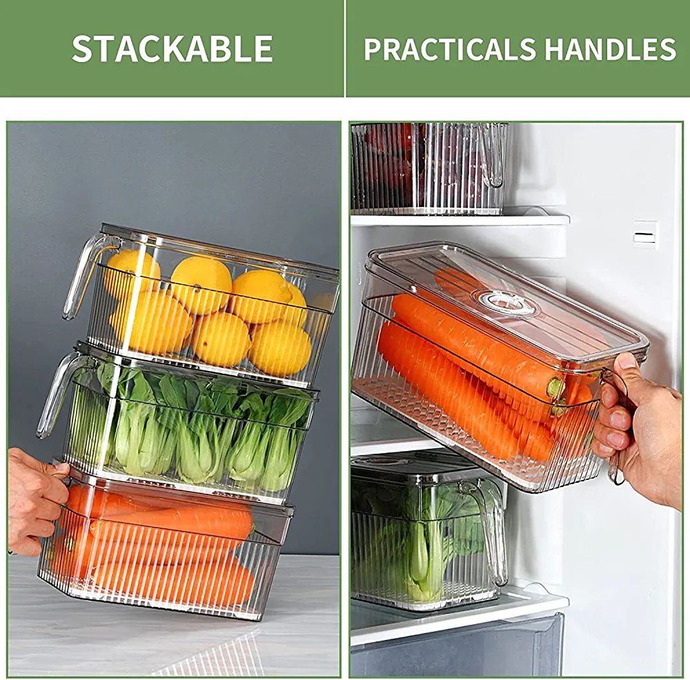 | nameOriginal | MIXDE 4 Pack Fridge Organizer with Freshness Timer Lid, Stackable Refrigerator Organizer Bins with Front Handle and Drain Tray, BPA-FREE Clear Plastic Storage Bins for Kitchen, Pantry, Refrigerator |