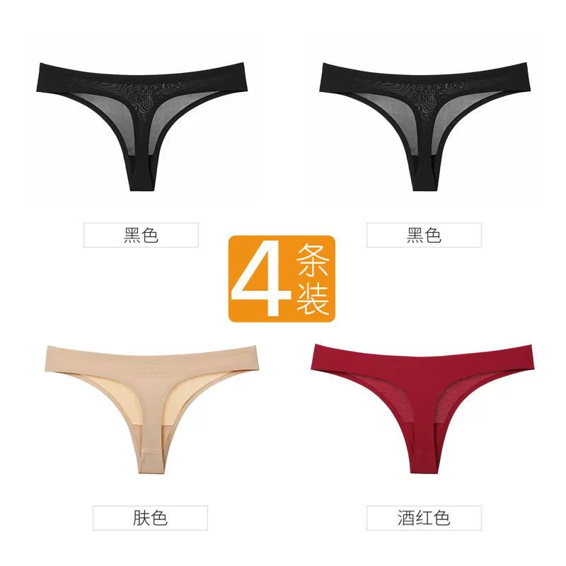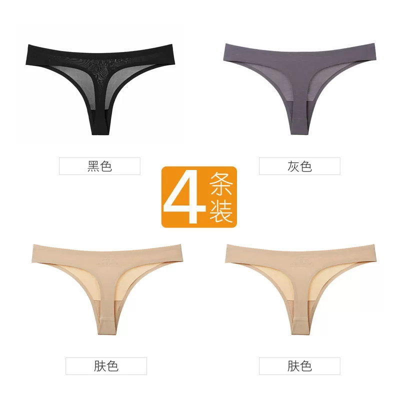 | nameOriginal | 4 pack of underwear women's ice silk thong one piece seamless low waist sexy European and American large size sports fitness T pants |