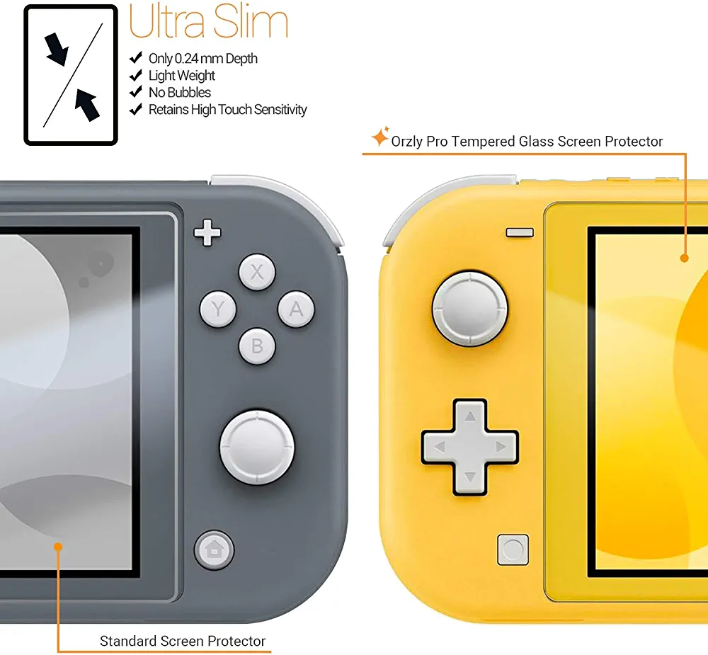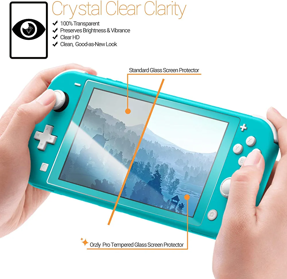 | nameOriginal | Orzly Screen Protector for Nintendo Switch Lite 2019 Model [4 Pack] Tempered Glass Screen Protectors. No Bubbles Easy Installation Anti Scratch Edition |