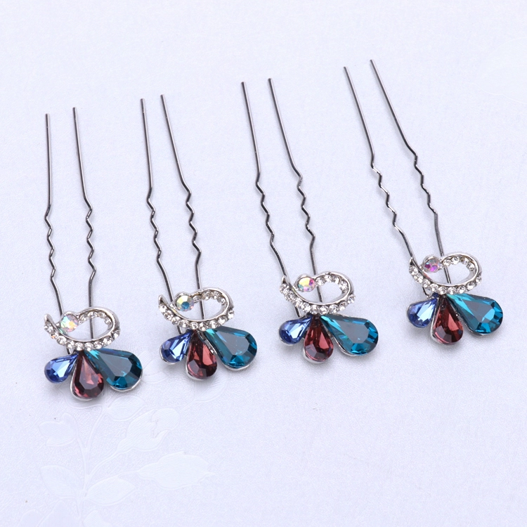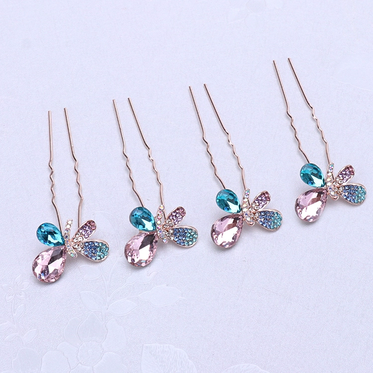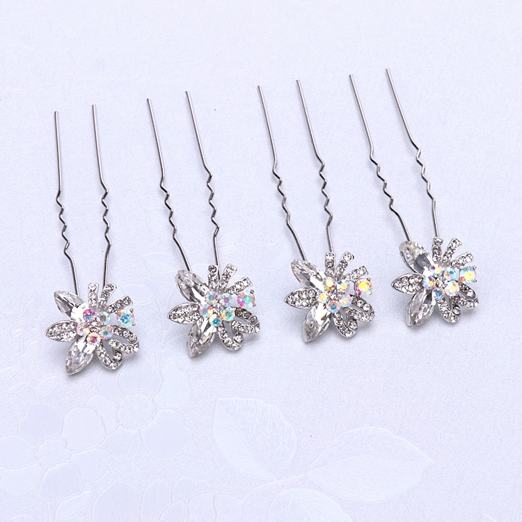 4-pack women’s pin crystal hairpin u-shaped chuck headdress