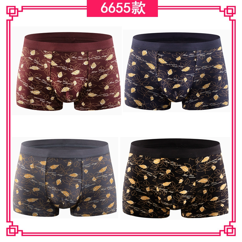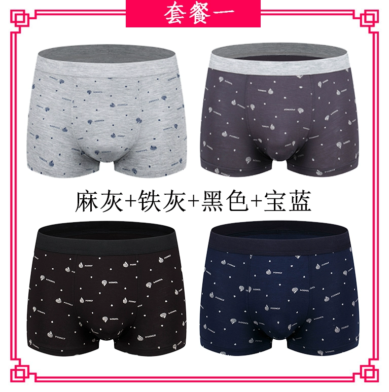 4-piece set of modal underwear for men, boxer briefs, pure cotton, mid-waist, large size, traceless bamboo fiber, men's boxer briefs