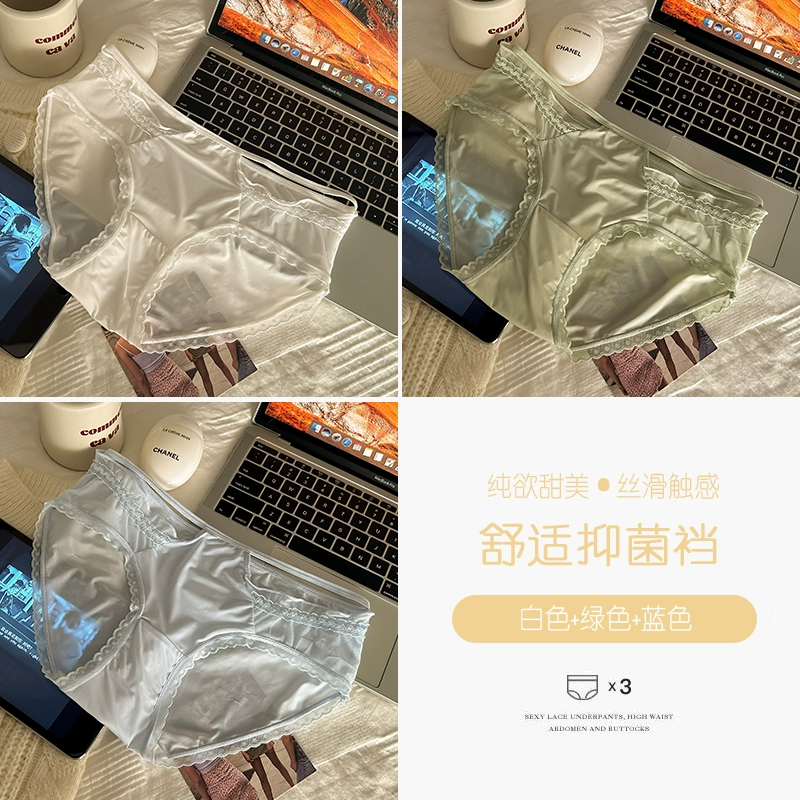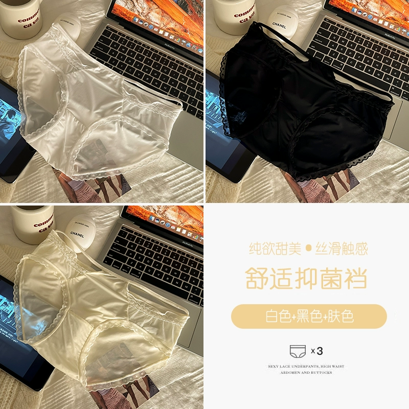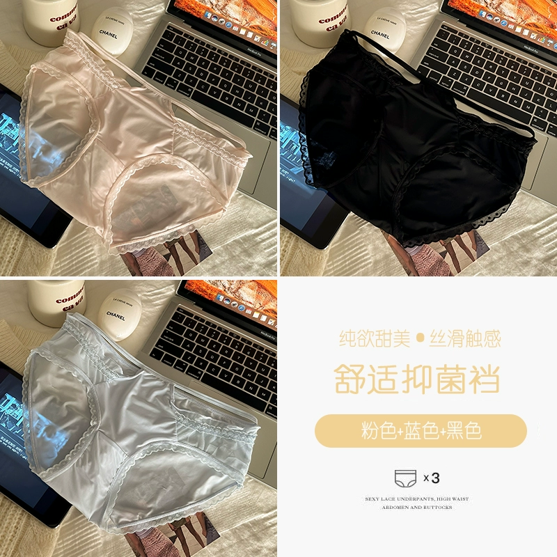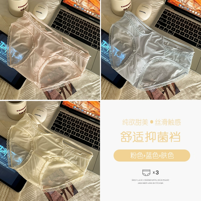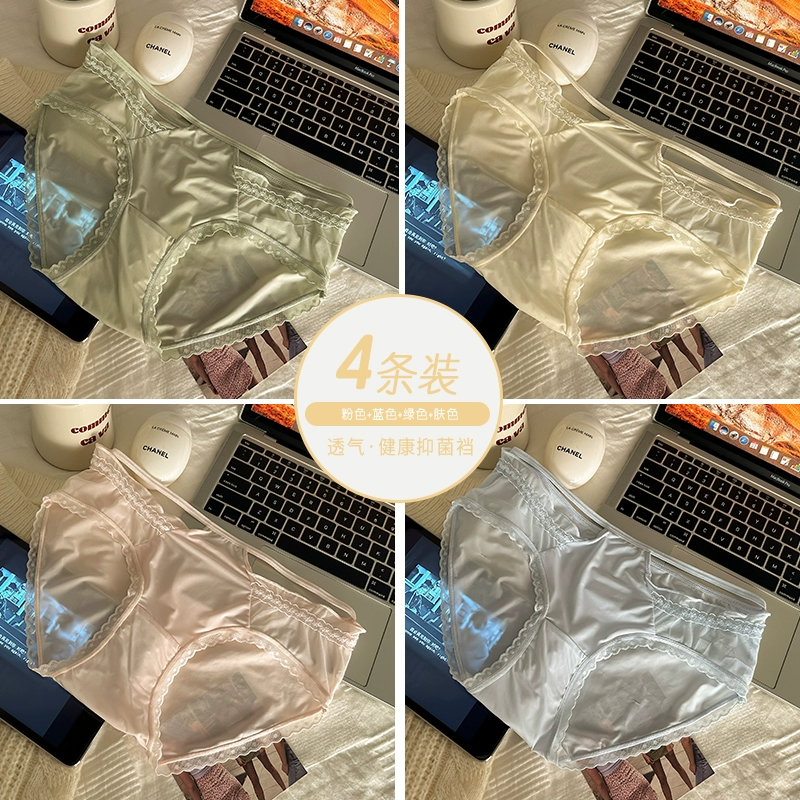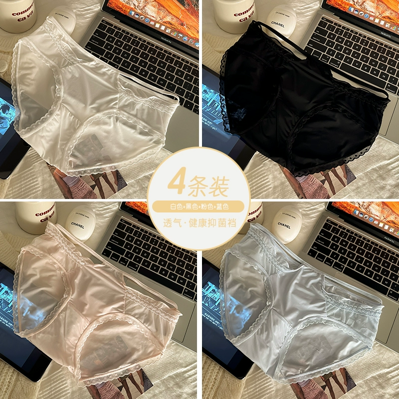 4 packed lace panties girl pure cotton crotch 2024 new pure desire ice silk without trace sexy lady triangular shorts
