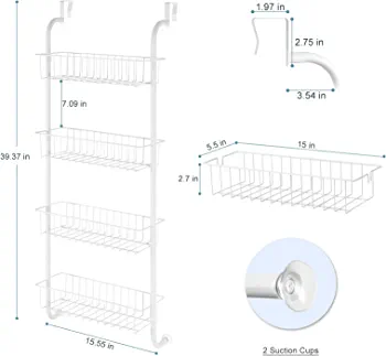 The OYEAL Over the Door Pantry Organizer is the perfect solution for maximizing your storage space in your kitchen, bathroom, or any other room in your home. Made of heavy-duty metal, this hanging spice rack organizer is built to last and can hold up to four baskets. The four-tier design allows for ample storage space, making it easy to organize and access your items. The white finish adds a clean and modern look to your space. The over-the-door design makes installation a breeze, and the sturdy hooks ensure that the organizer stays securely in place. Say goodbye to cluttered cabinets and hello to a more organized and efficient space with the OYEAL Over the Door Pantry Organizer.