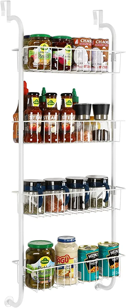 | nameOriginal | OYEAL Over the Door Pantry Organizer, Heavy-duty Metal Hanging Spice Rack Organizer with 4 Baskets, 4-Tier Pantry Door Organization and Storage for Cabinet, Kitchen, Bathroom, White |