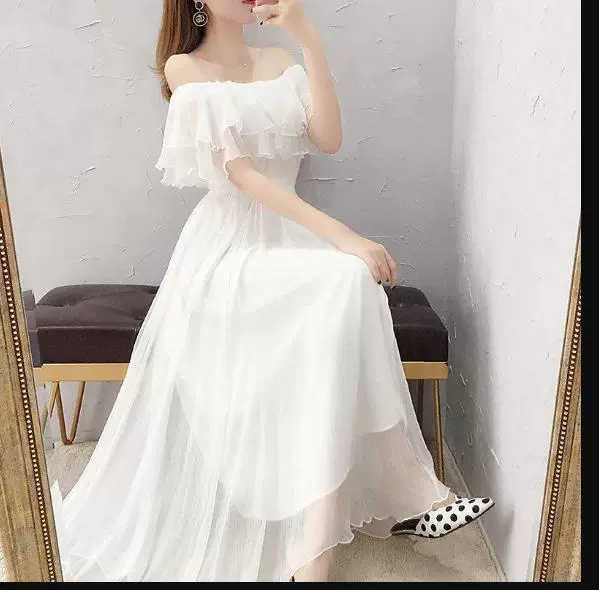 4 ways to wear 2 layers summer chiffon white dress women’s long skirt one-shoulder princess skirt temperament waist-hugging and slimming