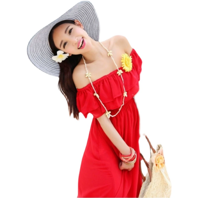 4 ways to wear 2-layer summer chiffon white dress women's long dress one-shoulder princess dress temperament waist slimming