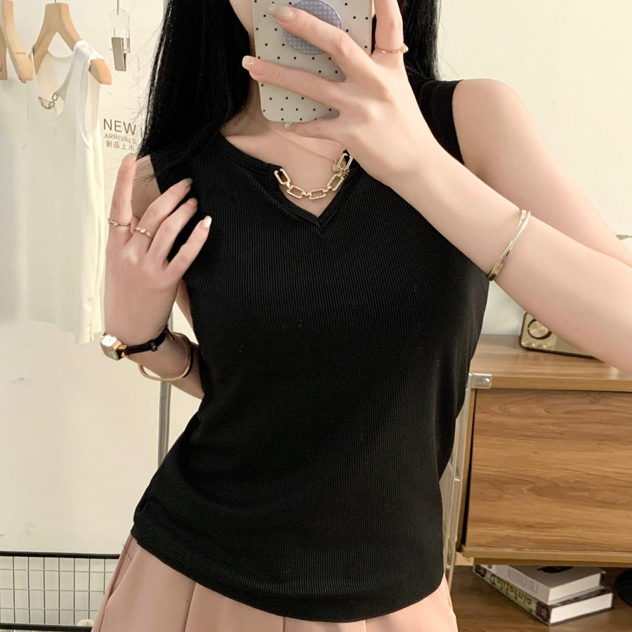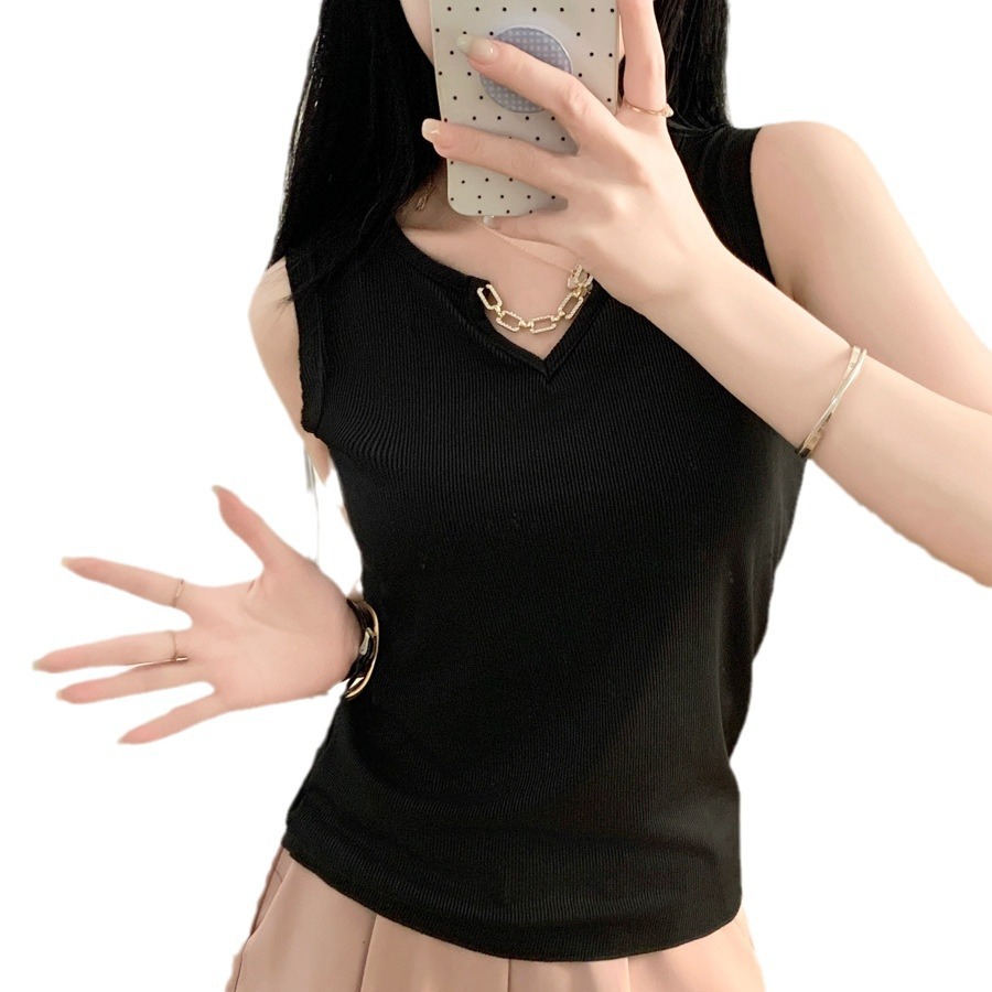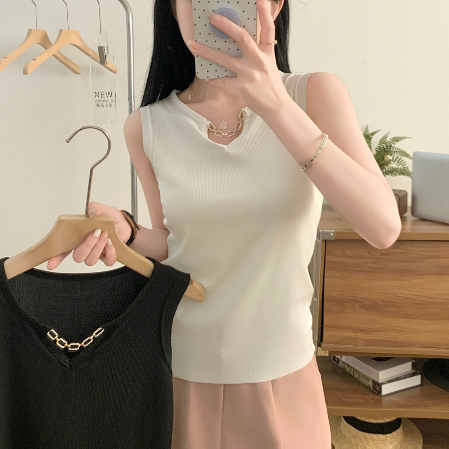 40.00 kg-69.00 kg! 2024 Summer New Korean Style Knitted Fir Vest Thin Ice Silk Sling for Women