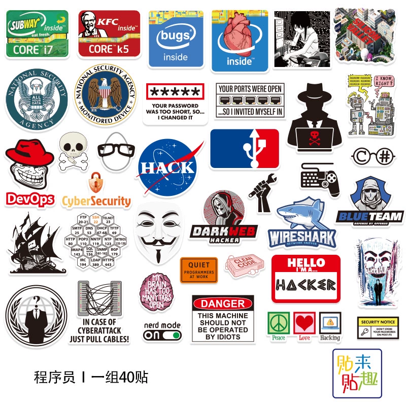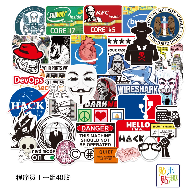 | nameOriginal | 40 fun spoof program logo stickers, personalized laptops, tablets, mobile phones, motorcycle helmet stickers, waterproof |