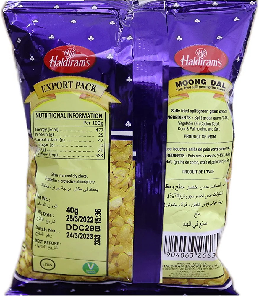 | nameOriginal | Haldirams Moong Dal, 40 Gm |